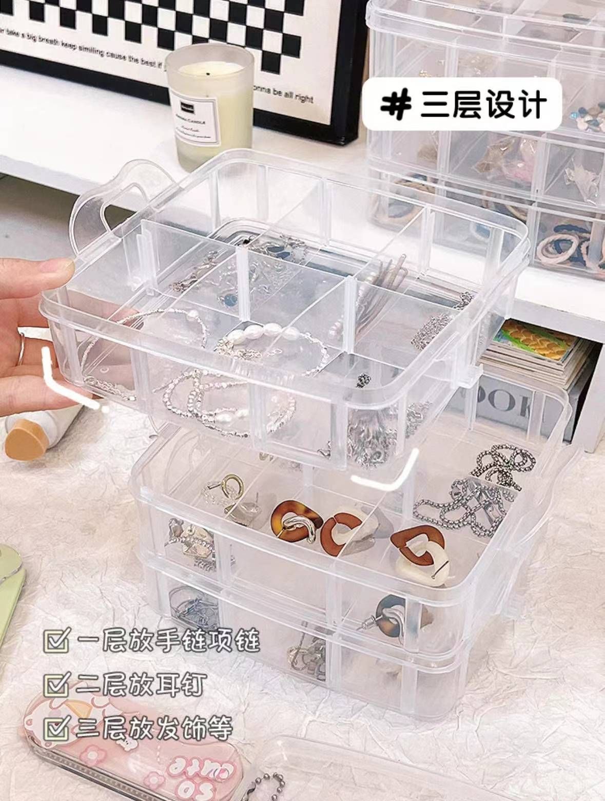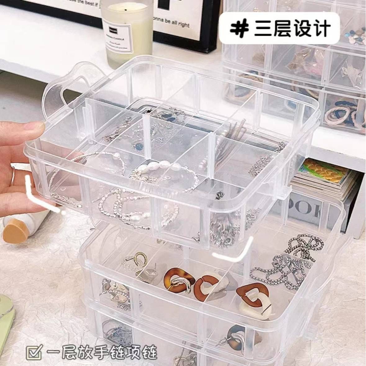 Jewelry Storage Box Multi-Layer Fixed Eighteen-Grids Earrings Earrings Necklace High-End Anti-Oxidation Storage Box Three Layers