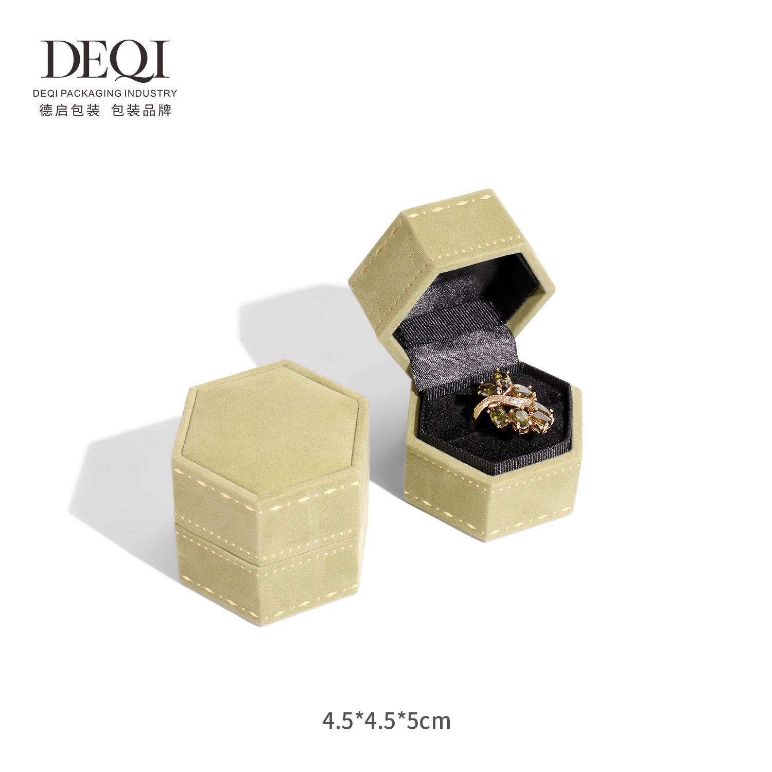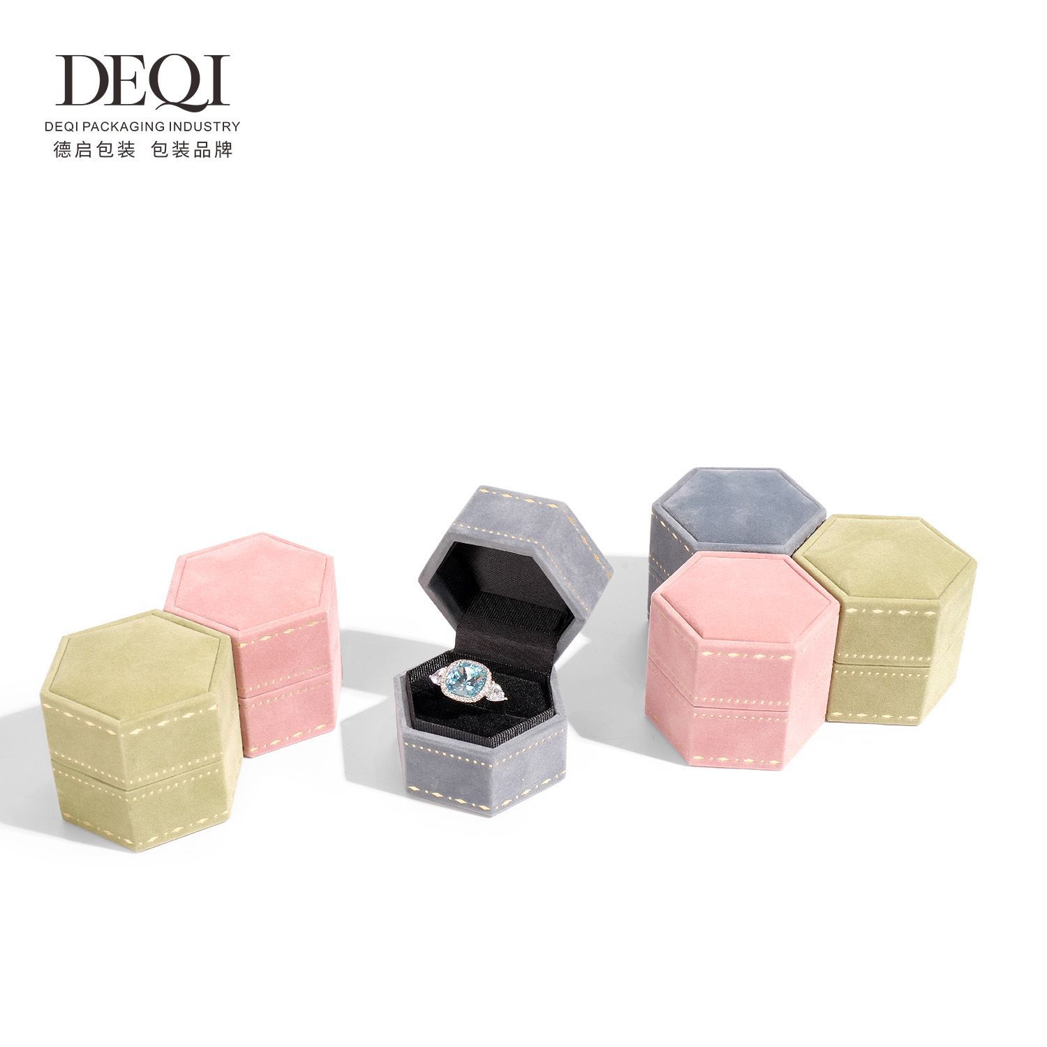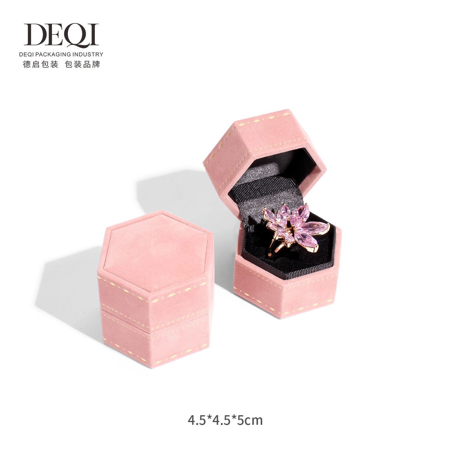 Deqi Hexagon Flip High-grade Ring Box Paper Velvet Printing Jewelry Proposal Wedding Diamond Ring Box Earring Box Jewelry Box