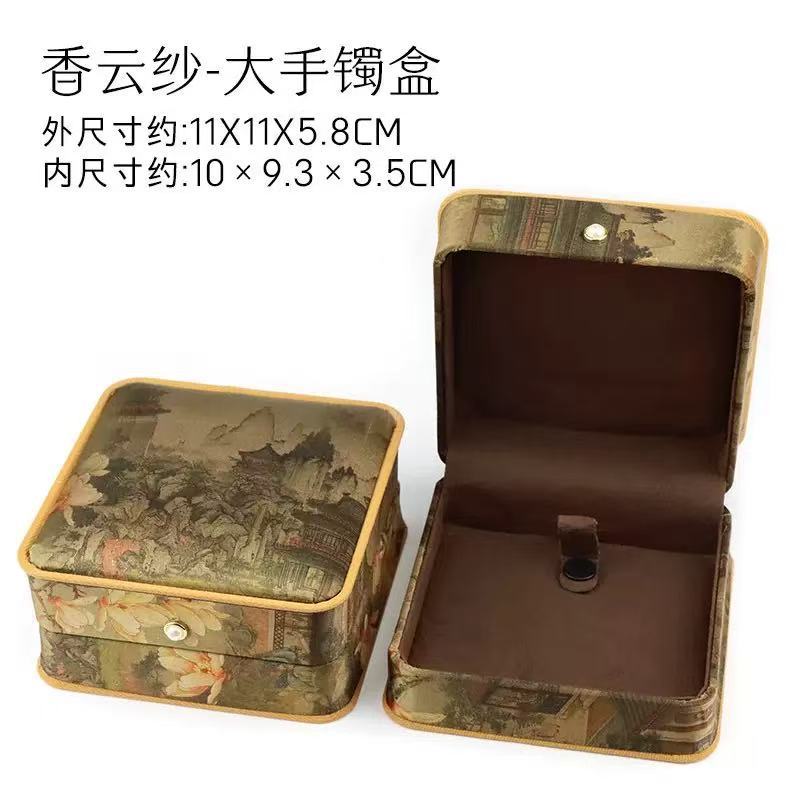 Specifications and models: Xiangyunsha large bracelet box; 11*11*5.3cm (outer diameter)