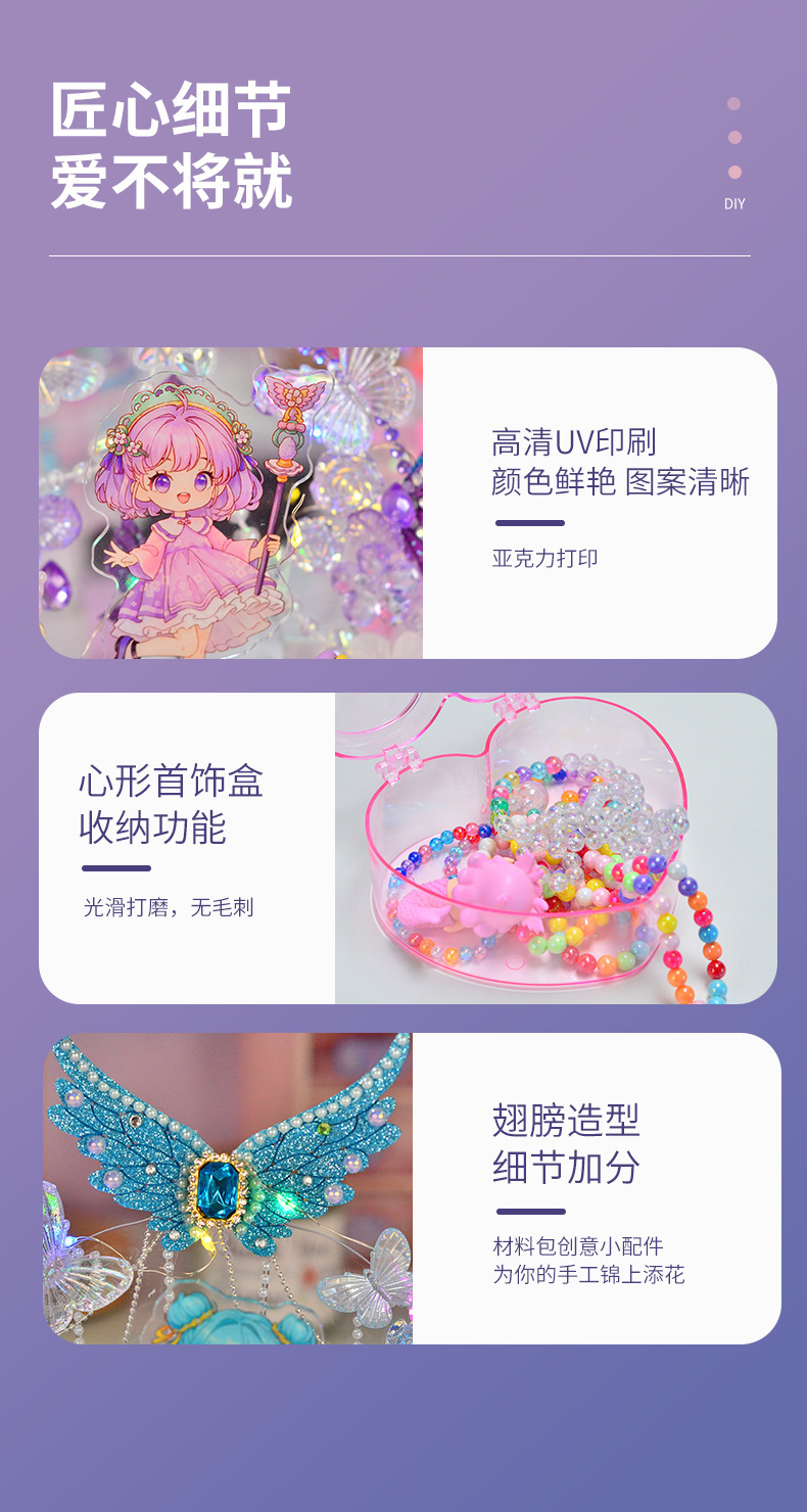 2025 New Fairy Jewelry Box Heart-Shaped Storage Box Night Light Princess DIY Handmade Material Kit Manufacturer Wholesale