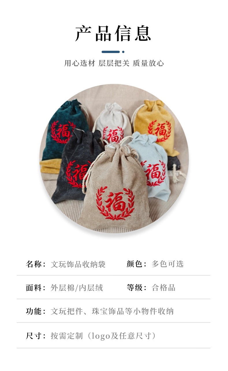 Manufacturer Wholesale Double-Layer Toy Bag Embroidered Jewelry Bundle Flap Pocket Pants Toy Walnut Bodhi Bag Plate Bead Bag