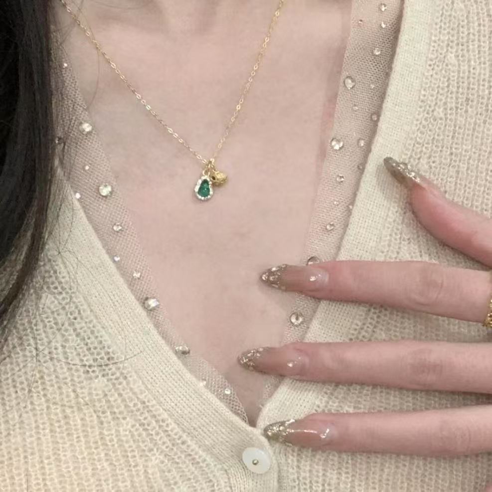 Little Red Book Explosive Women's Golden Retro Chinese Style High-end Light Luxury Joker Pot Gourd Necklace Wholesale