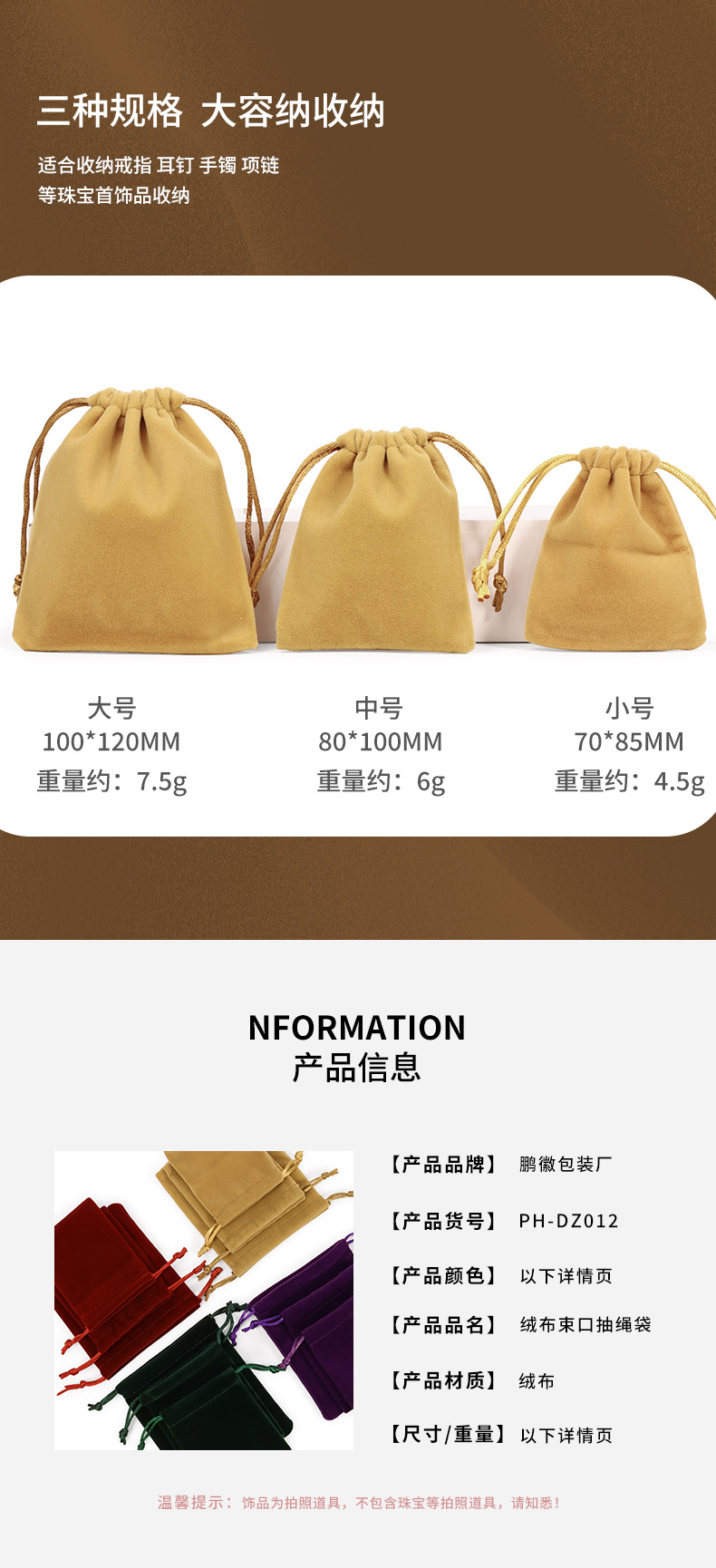 Specifications and models: Brown-velvet bag; large size 10*12cm