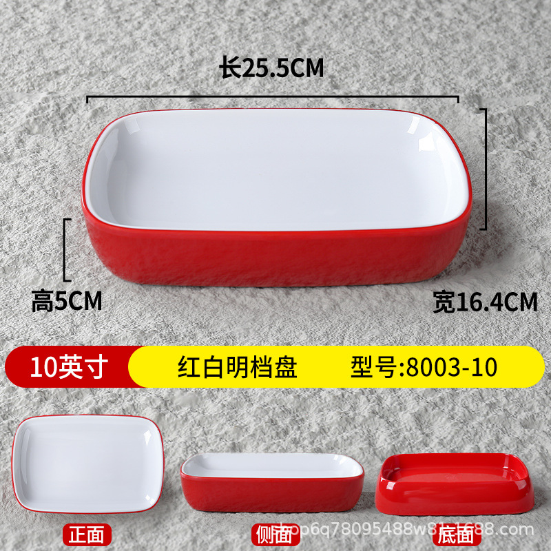 Color: 13_ 10inch red and white braised vegetable display plate 1011-10 food grade