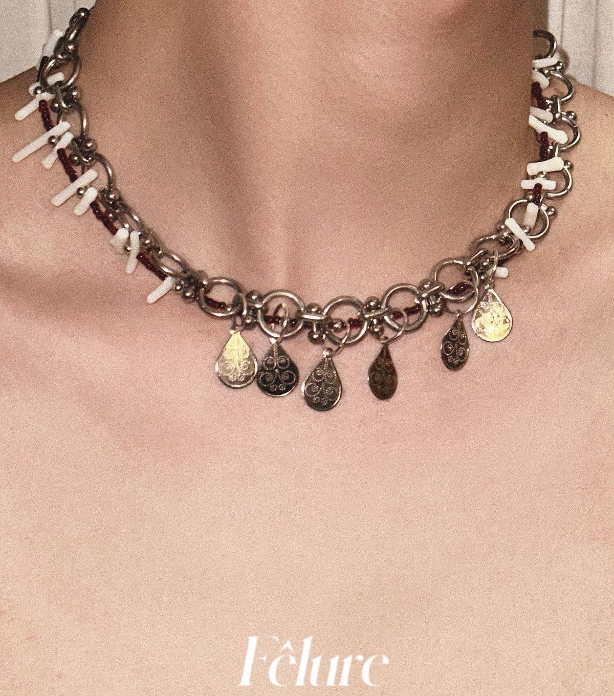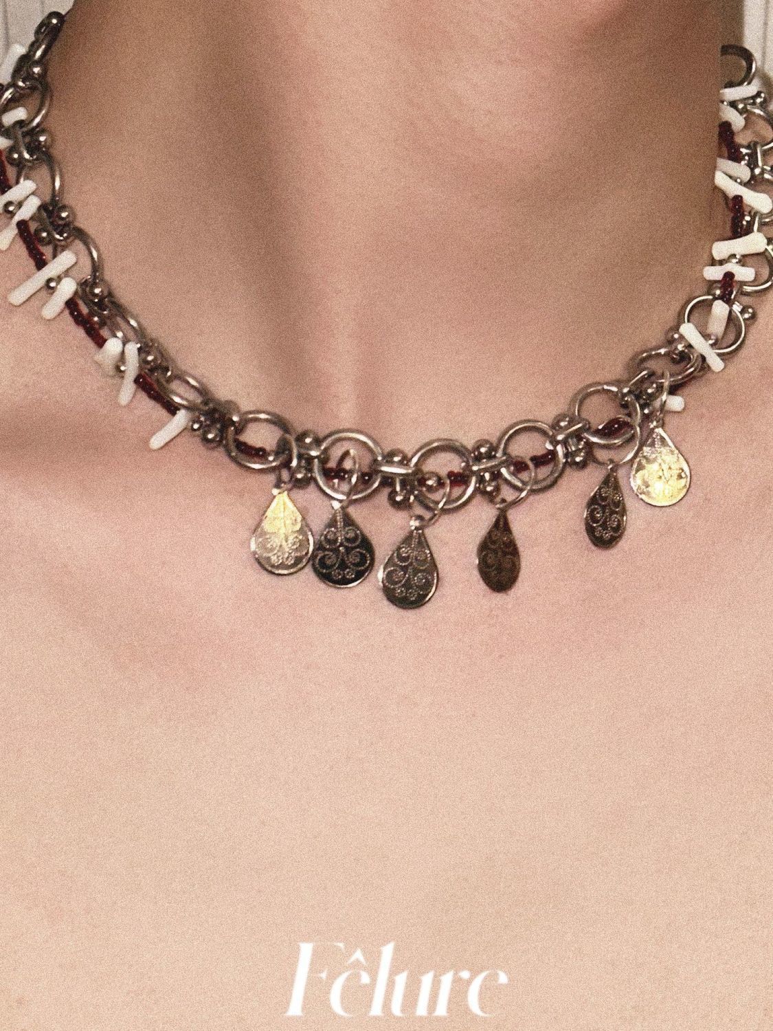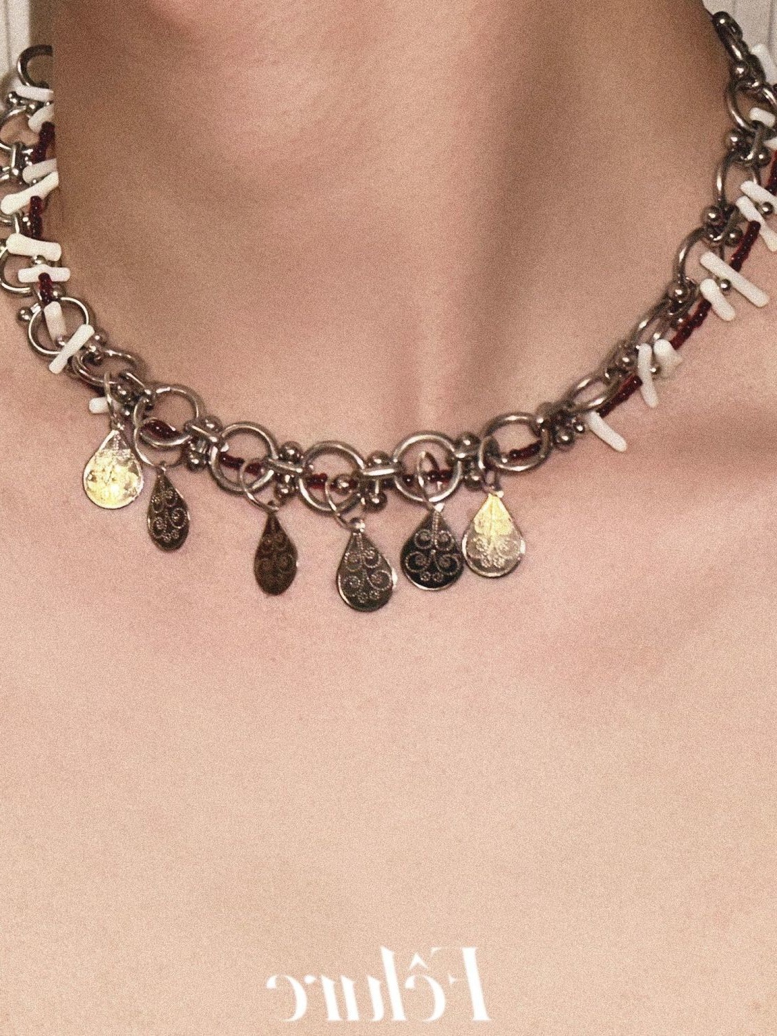 Jiuyu Jewelry Original Ivory Shell Tribal Design Imported Glass Bead Chain Water Drop Handmade Stacked Chain Necklace No