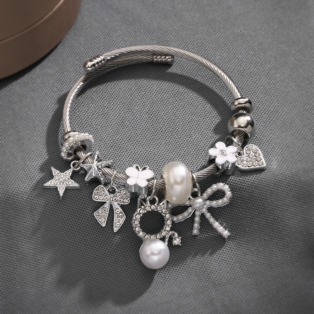 Cross-border Europe and the United States new best selling cartoon pearl cat bracelet animation cute KT cat zinc alloy bracelet wholesale jewelry