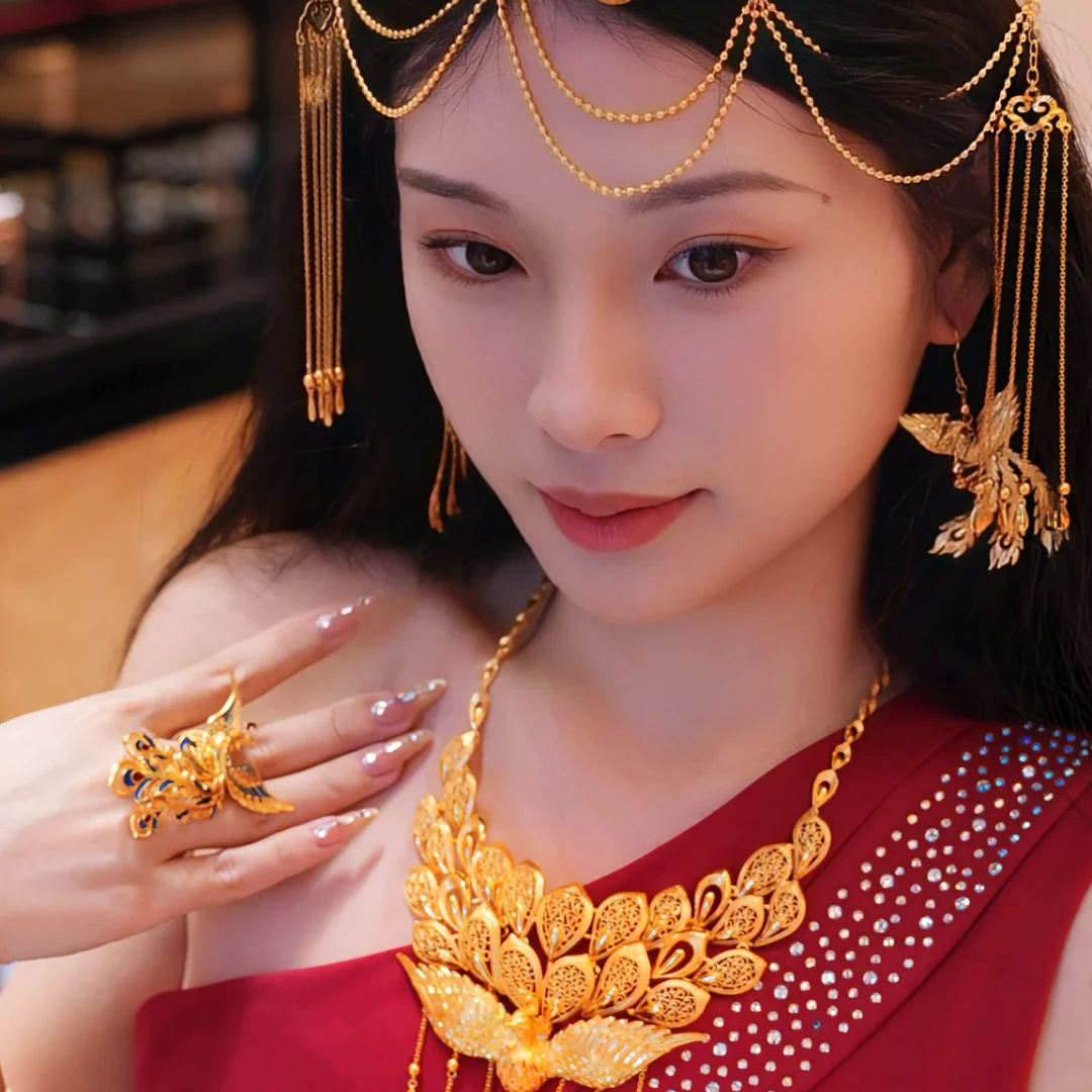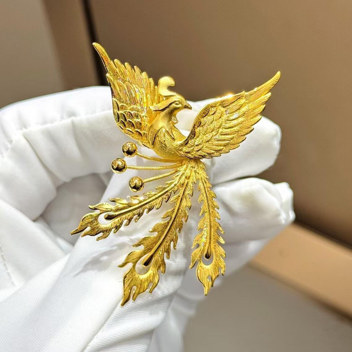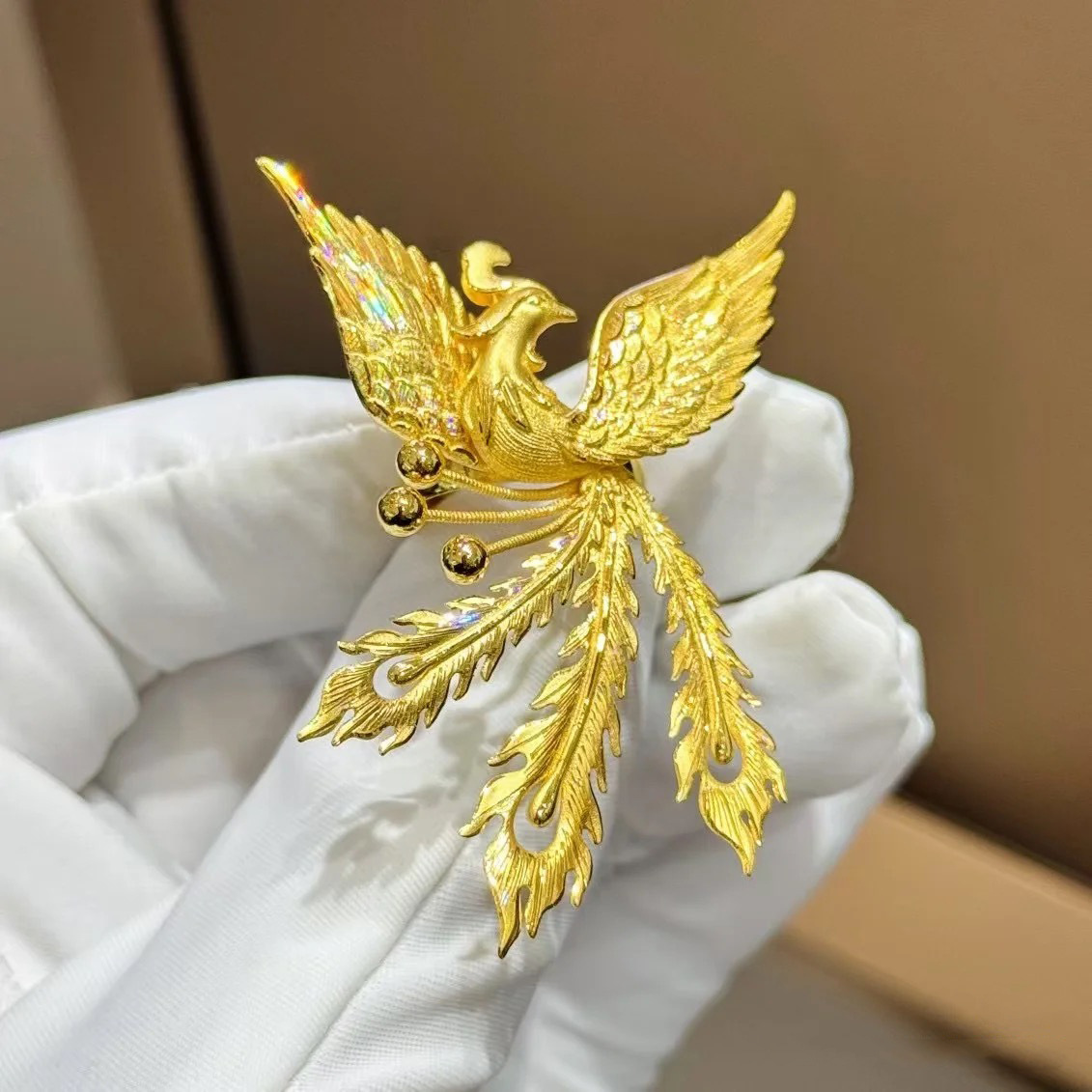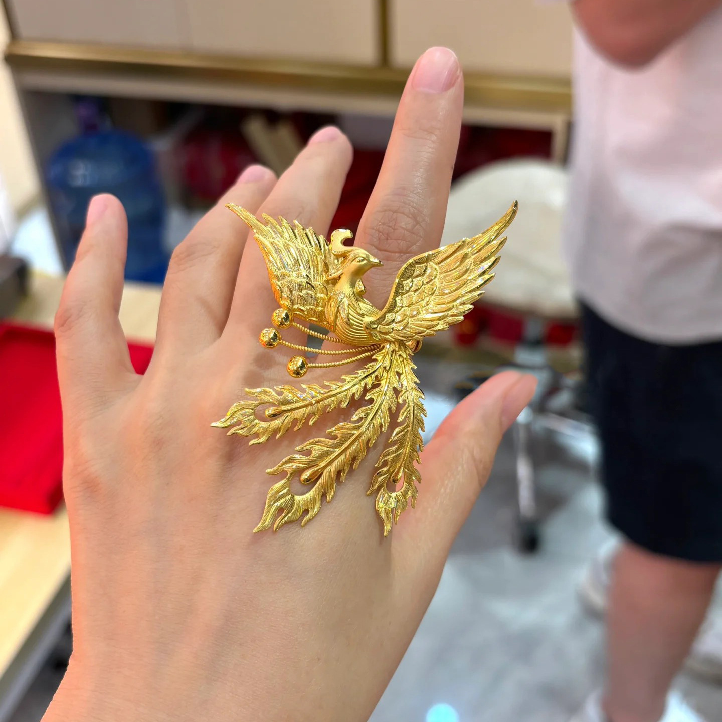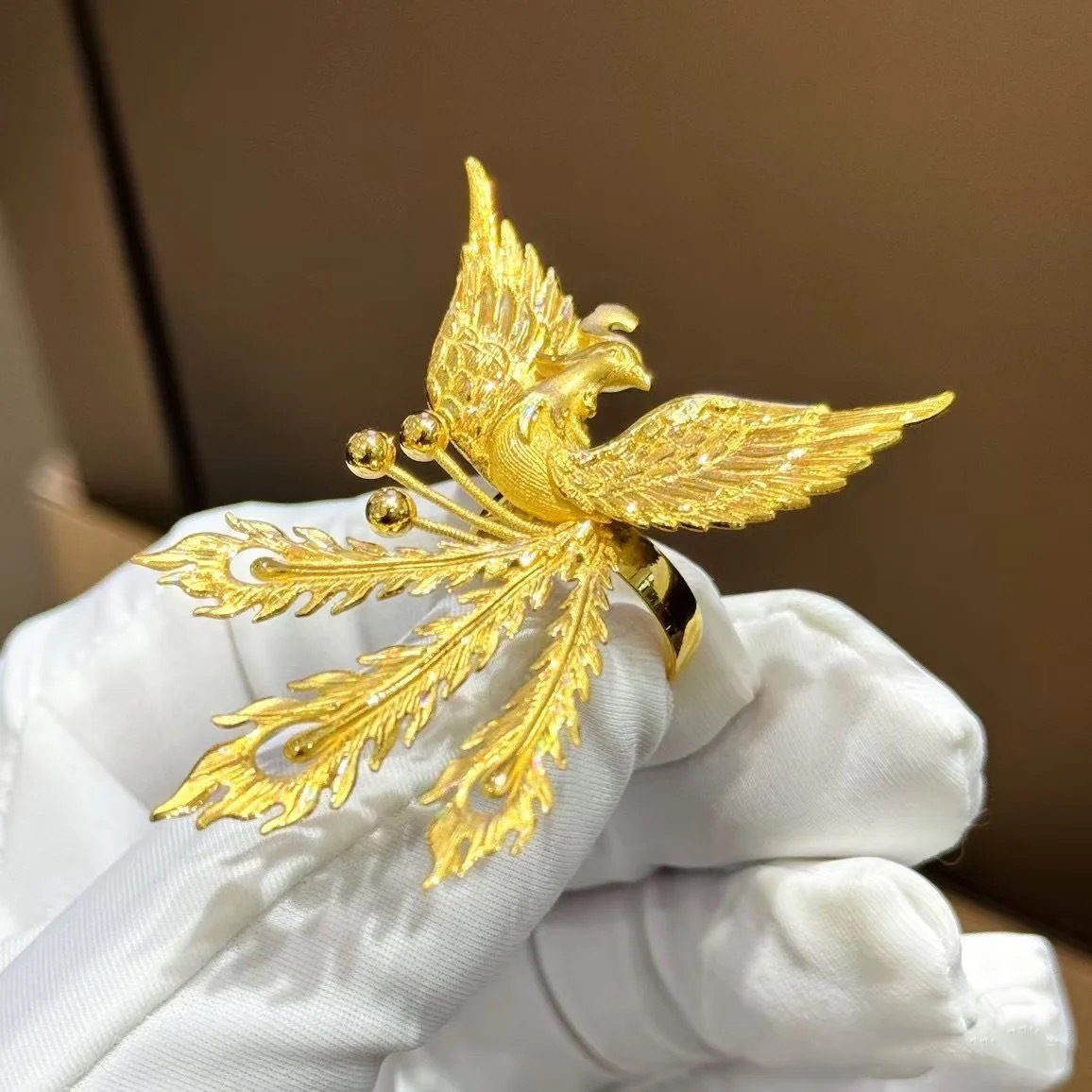 Ancient Sands Gold Craft Phoenix Dance Nine-day Ring New Chinese Court Style Gradient Enamel Color Point Feather Golden Phoenix Female Ring