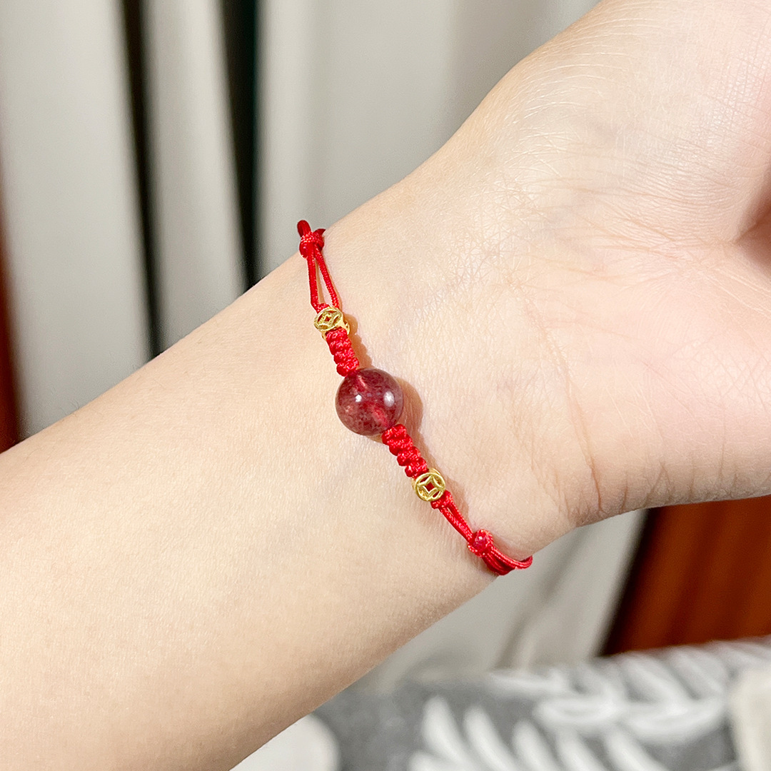 Color: 8mm strawberry crystal sterling silver copper coin braid