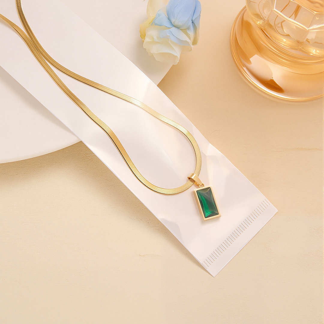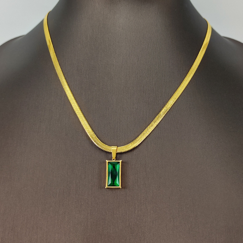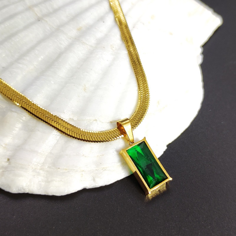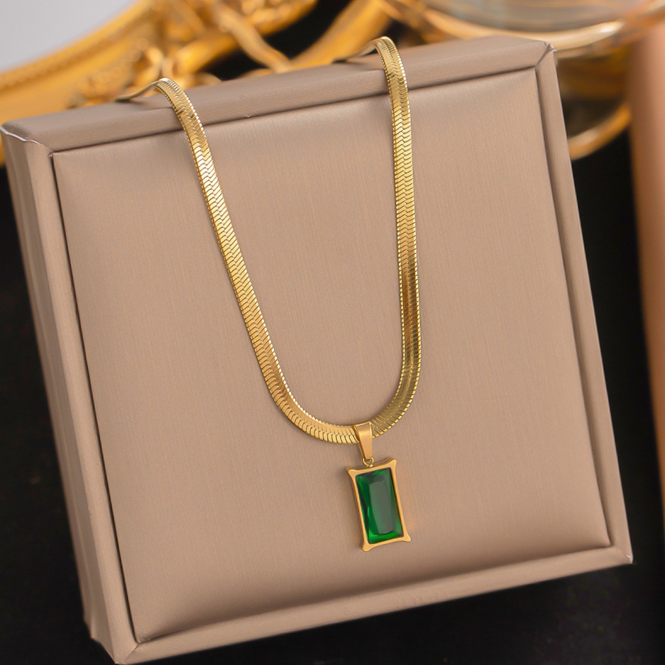 Fashionable Accessible Luxury Emerald Diamond Titanium Steel 18K Gold Necklace Women's Niche High-End Diamond Clavicle Chain Earrings Wholesale