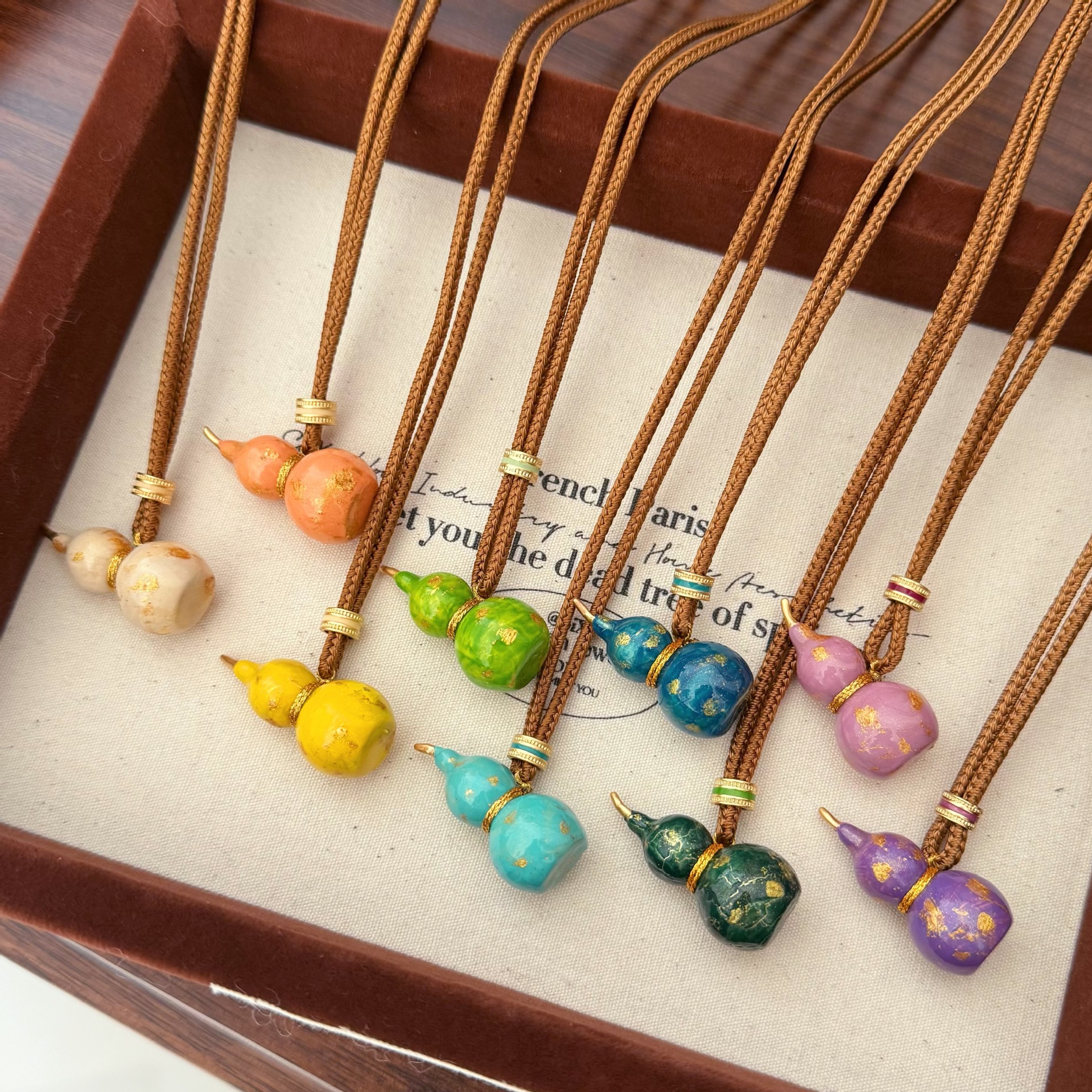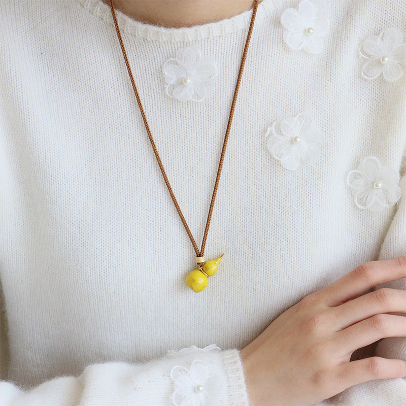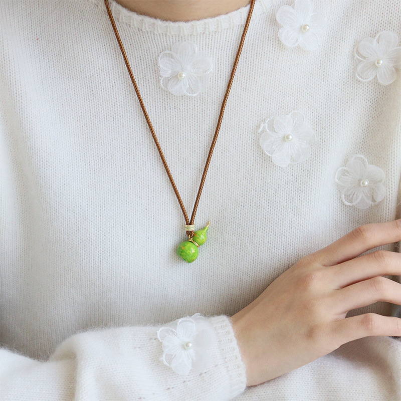 Original Spring and Summer New Color Dopamine Oil Gourd Necklace Light Luxury Niche Fashion High-end Sense Woolen Chain for Women