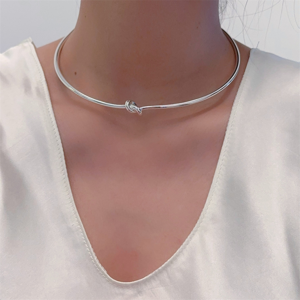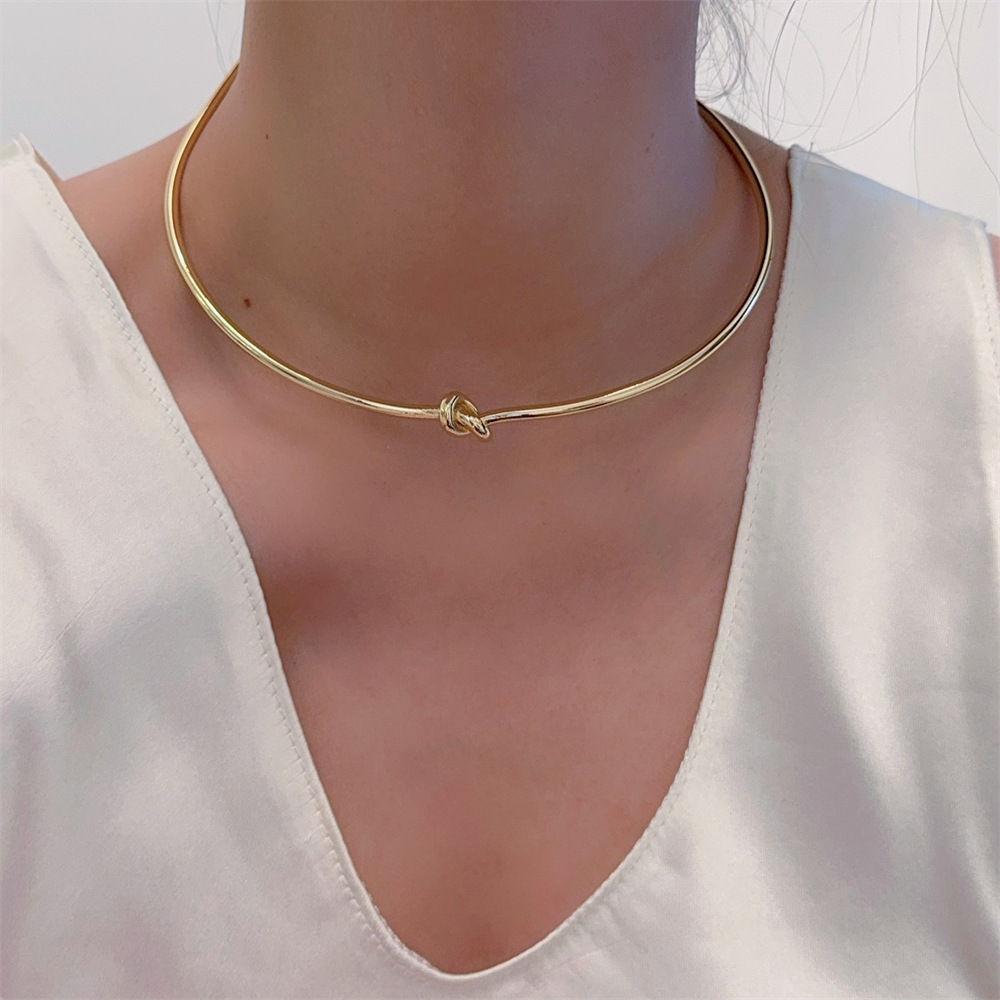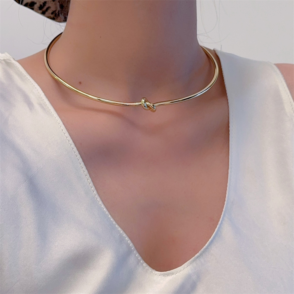 Sexy Choker Knotted Gold Open Collar Women's Necklace Korean Ins Style Titanium Steel Clavicle New Chinoiserie Necklace