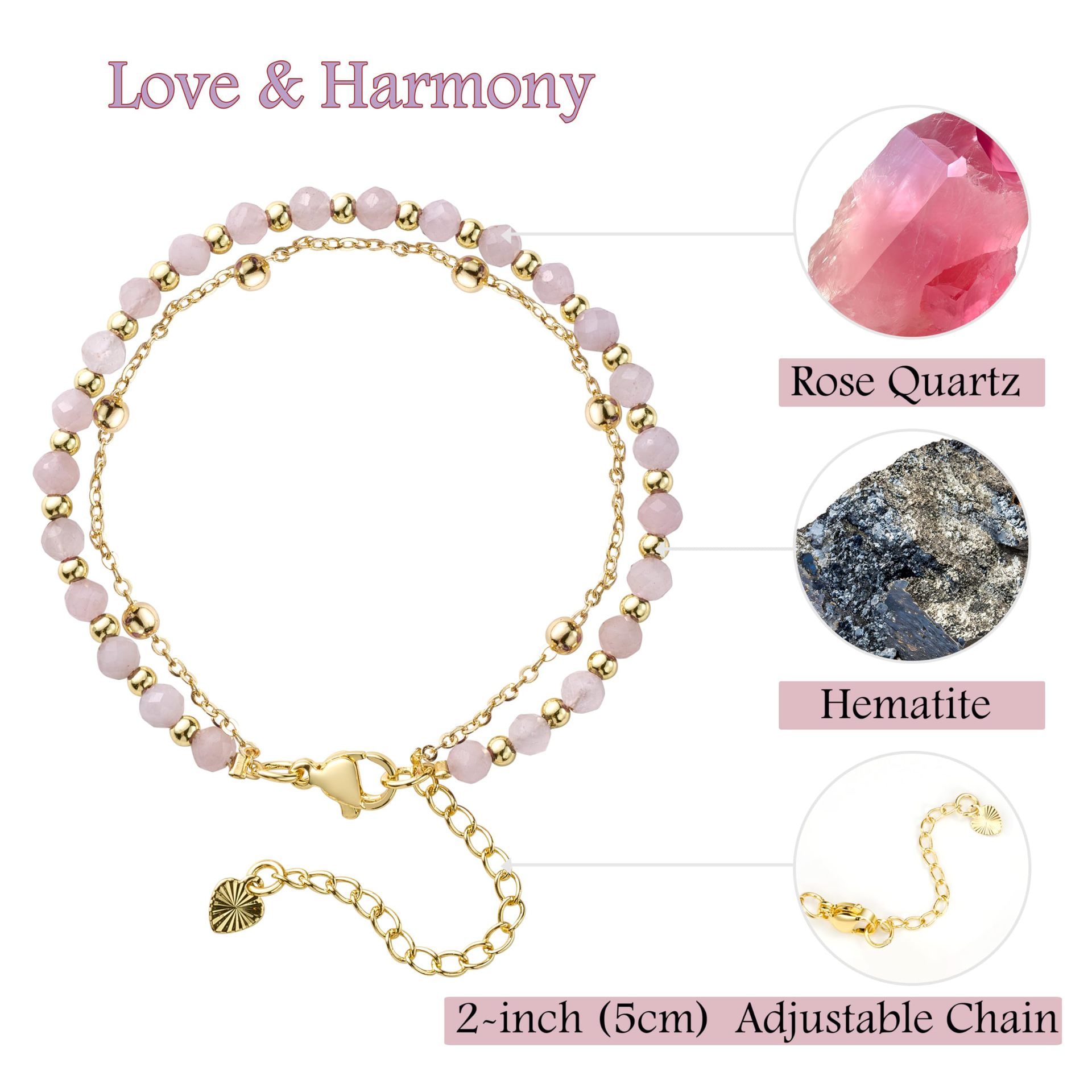 Color: Rose quartz faceted bead double layer bracelet