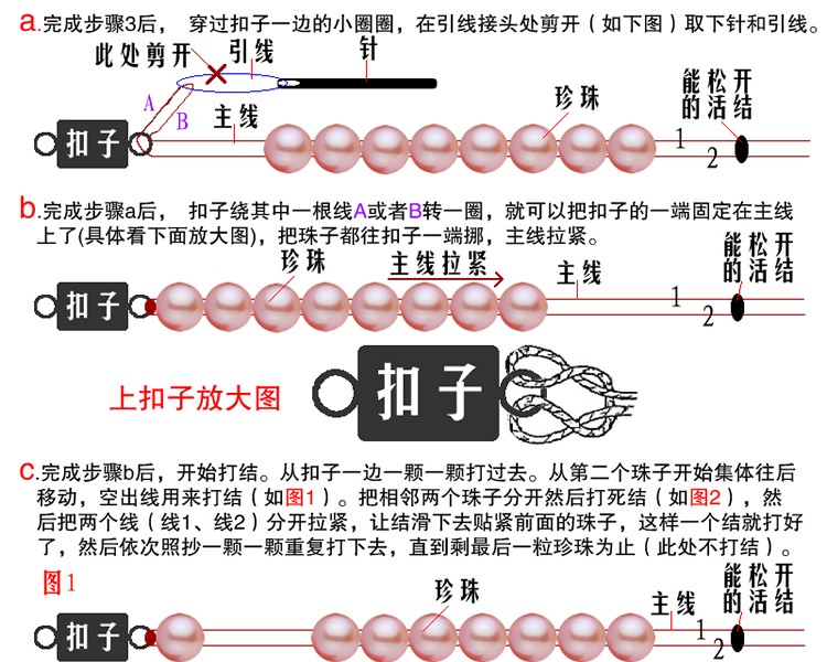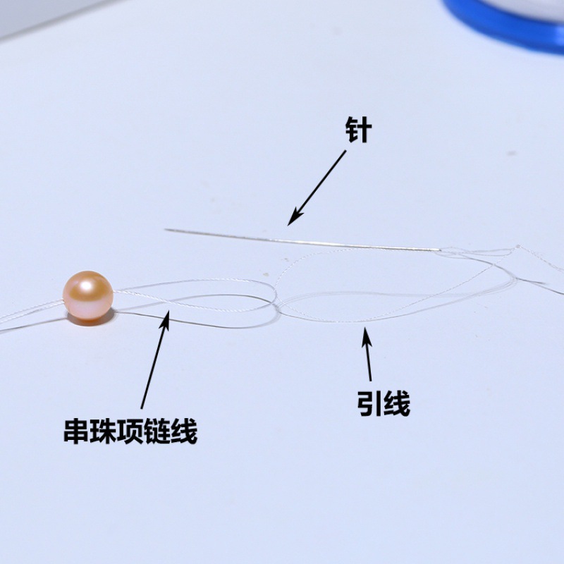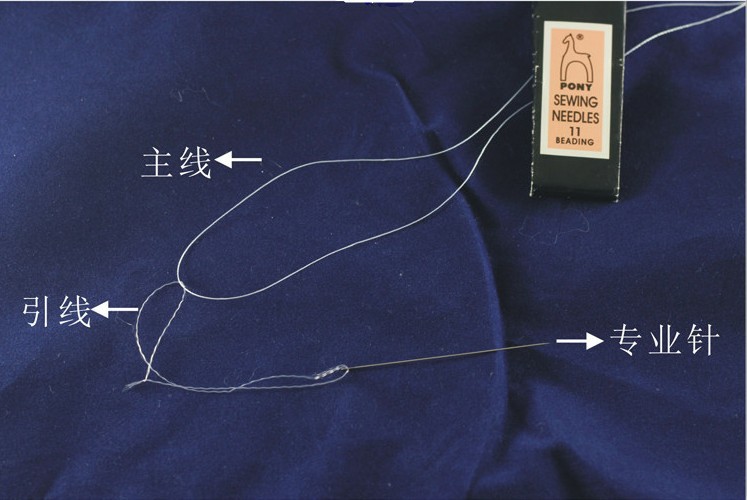 非常细的针,孔也非常小, 需要用引线把主线引进珍珠孔