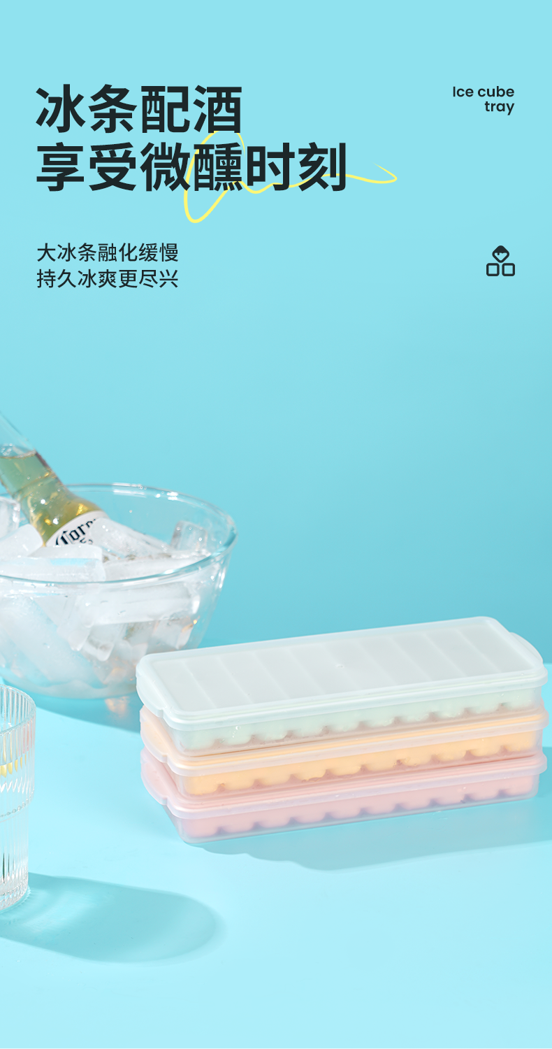 Silicone Ice Lattice Long Strip Large Ice Cube Mold Ice Box Commercial Whisky Wine Food Supplementary Box with Lid Household Square
