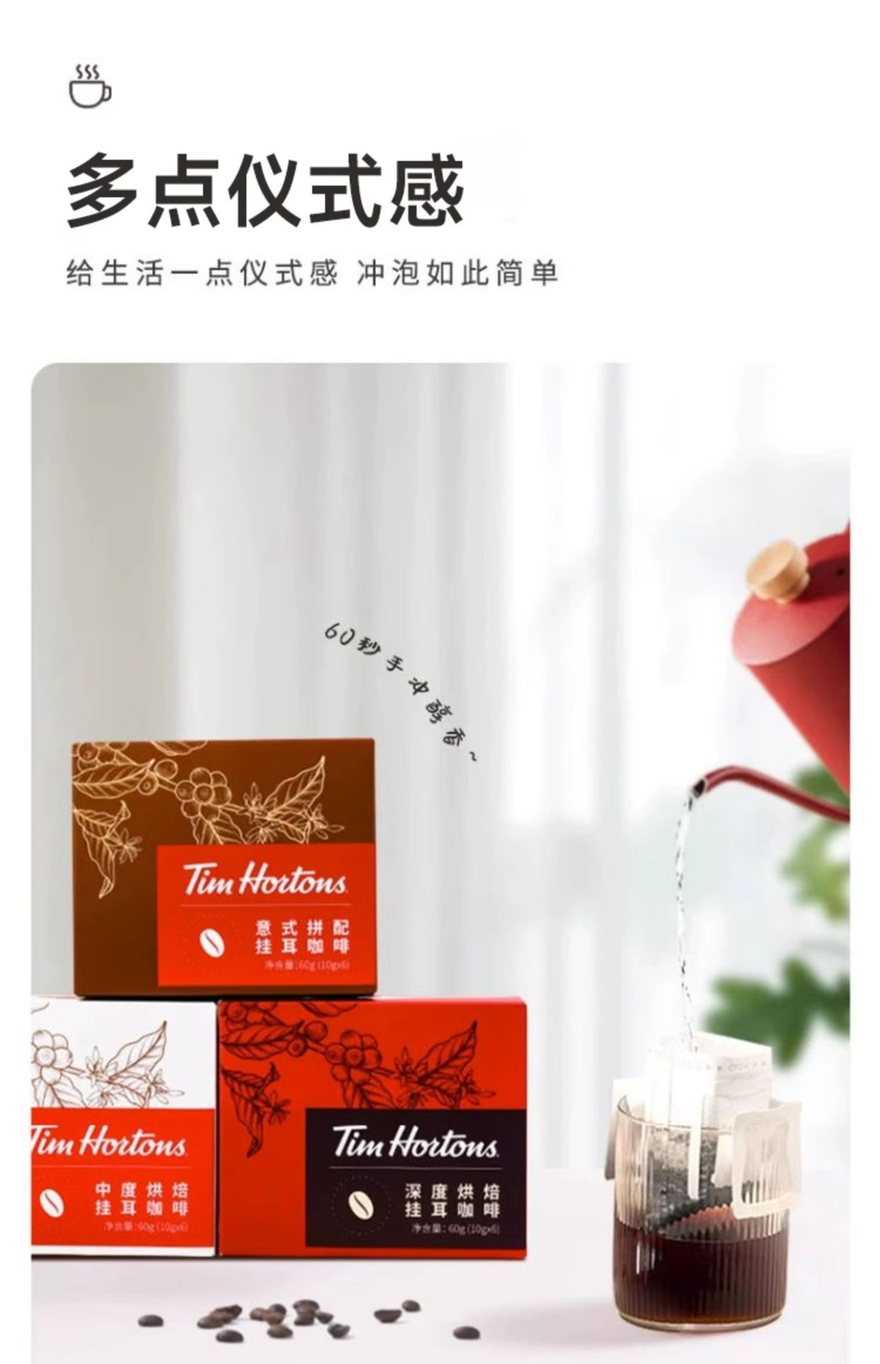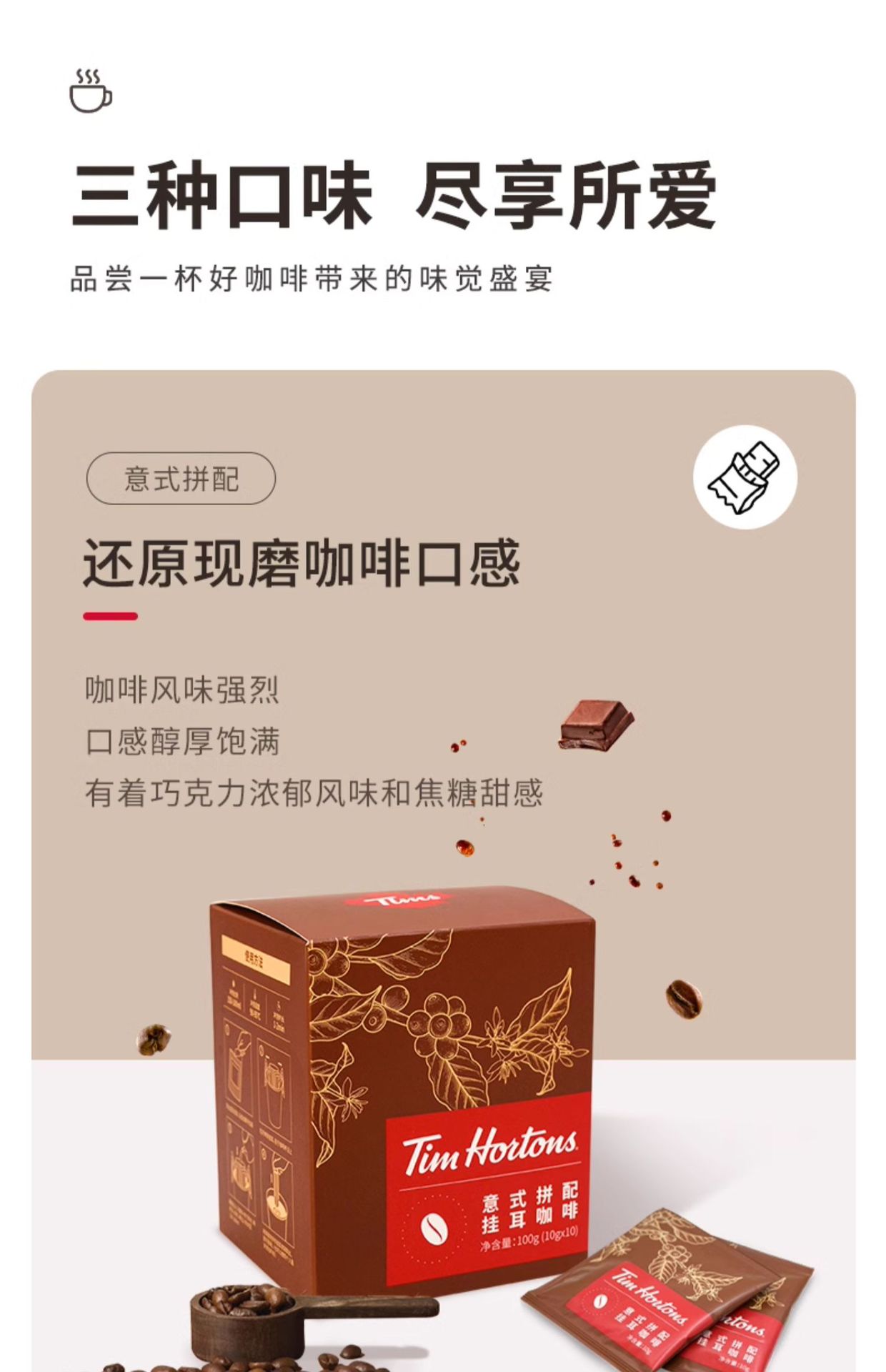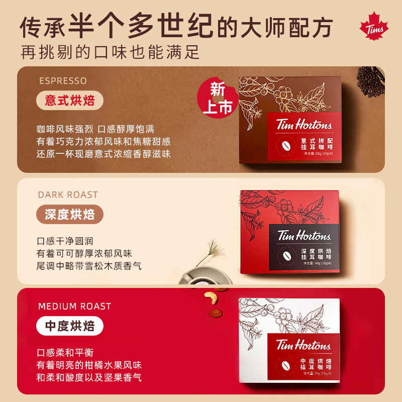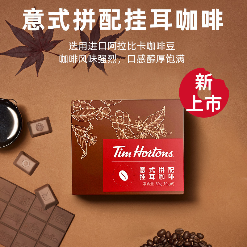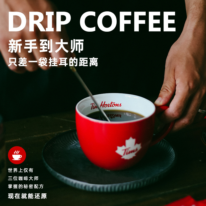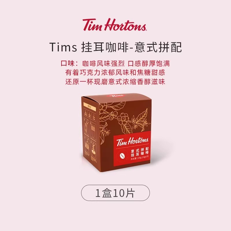 Tims Drip Coffee Premium Italian Style Hand-Brewed Drip Filter Black Coffee American Freshly Ground Coffee Powder 10 Pieces