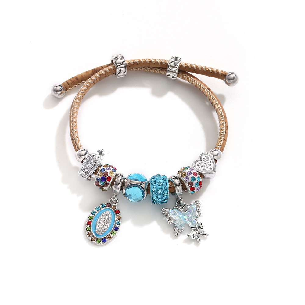 European and American Hot Sale New Style Cork Rope Bracelet for Men and Women Adjustable Religious Hand Rope Bow Jesus Pendant Bracelet