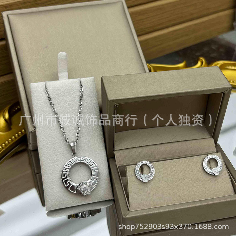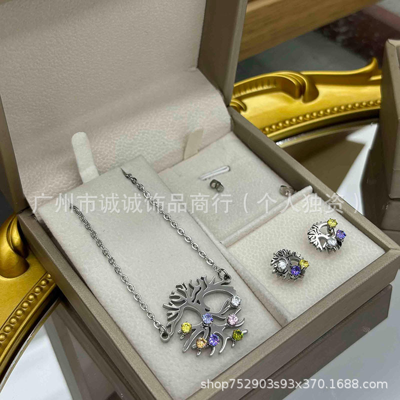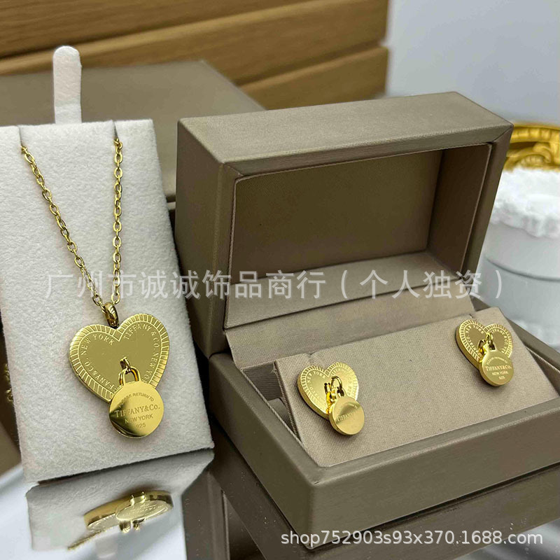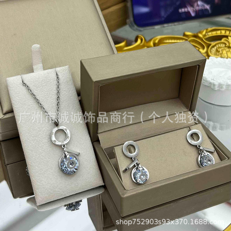 Gold-Colored Light Luxury Necklace, Gold Fashion Elegant Simple Ins Style Chain Set Gift for Girlfriend Rhombus Jewelry Set