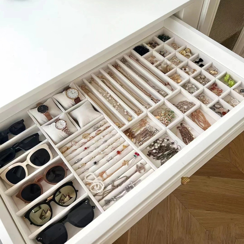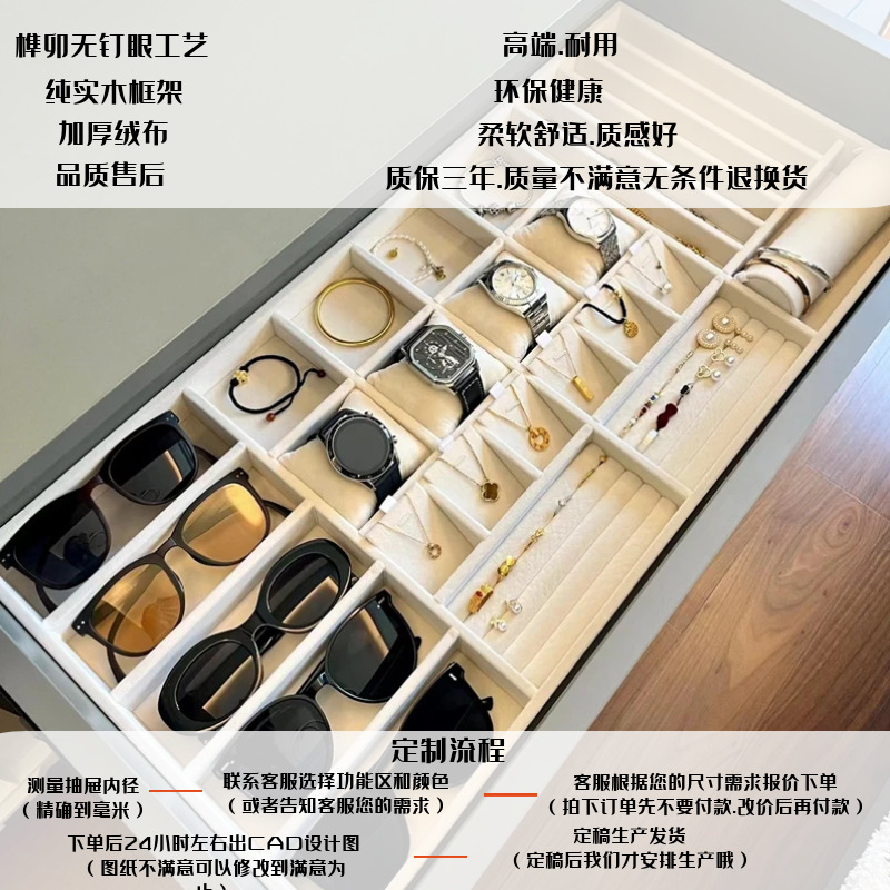 实力厂家,专业定制高端抽屉内部收纳盒,涵盖绒布首饰收纳,皮革首饰收纳,绒布内衣内裤袜子收纳,皮革内衣内裤袜子收纳,墨镜展示盘,酒店抽屉酒杯收纳等,以及皮革收纳箱,收纳柜!