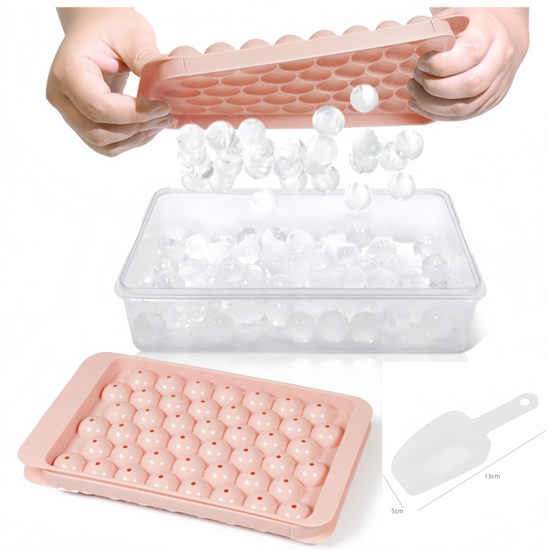 Color: Pink*medium size*2 pieces - round ball ice tray (16.5*10x2cm) + ice box + ice shovel