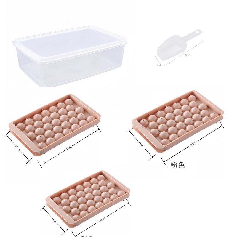 Color: Pink*medium size*3 pieces-round ball ice tray (16.5*10x2cm)+ice box+ice shovel