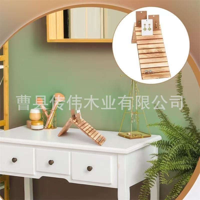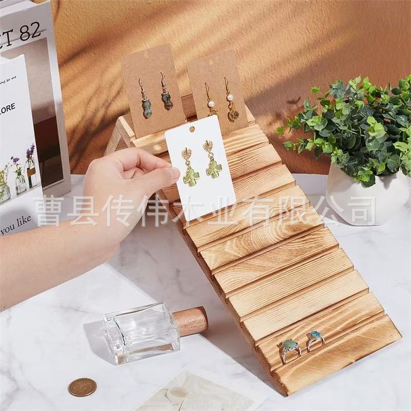 Custom Inclined Wooden Jewelry Display Stand Multi-layer Earrings Ear Studs Store Retail Ring Display Rack