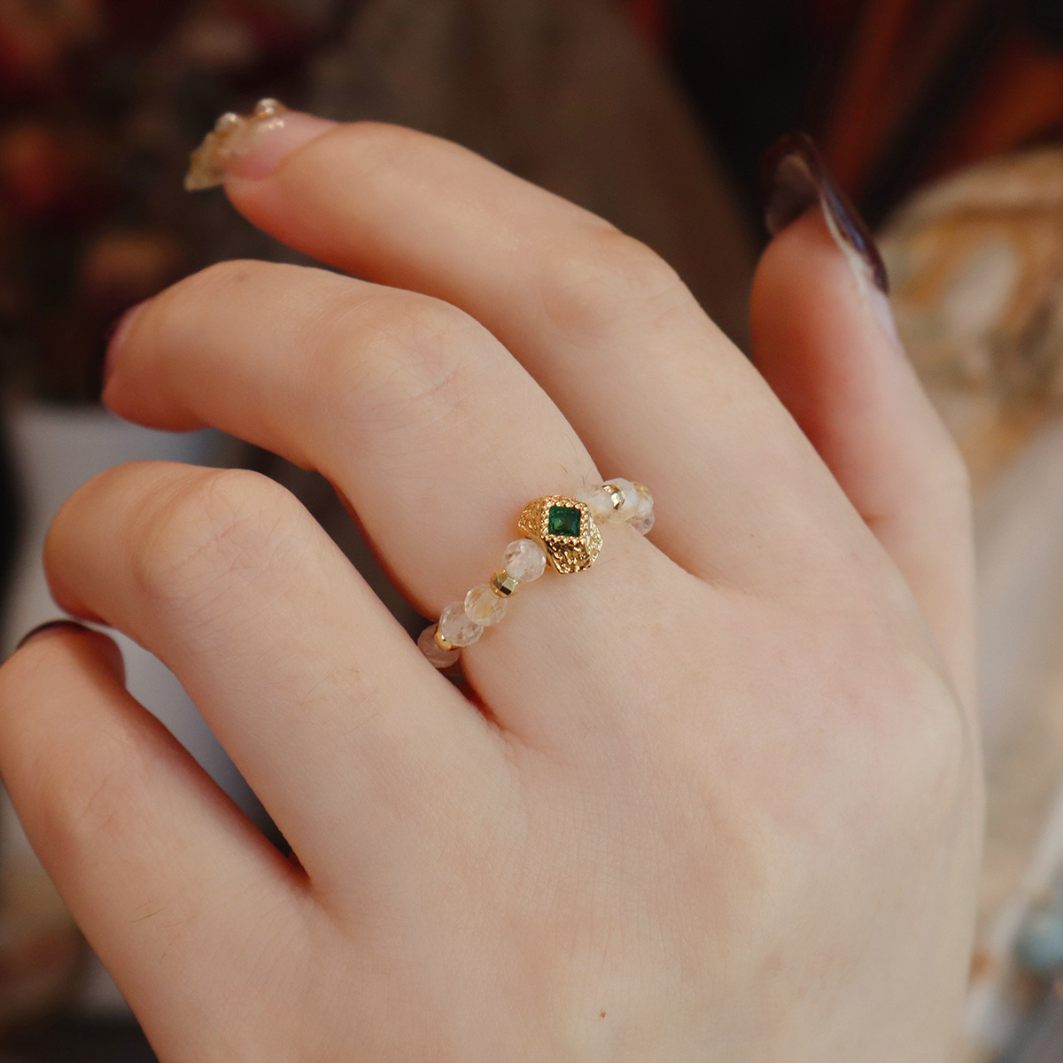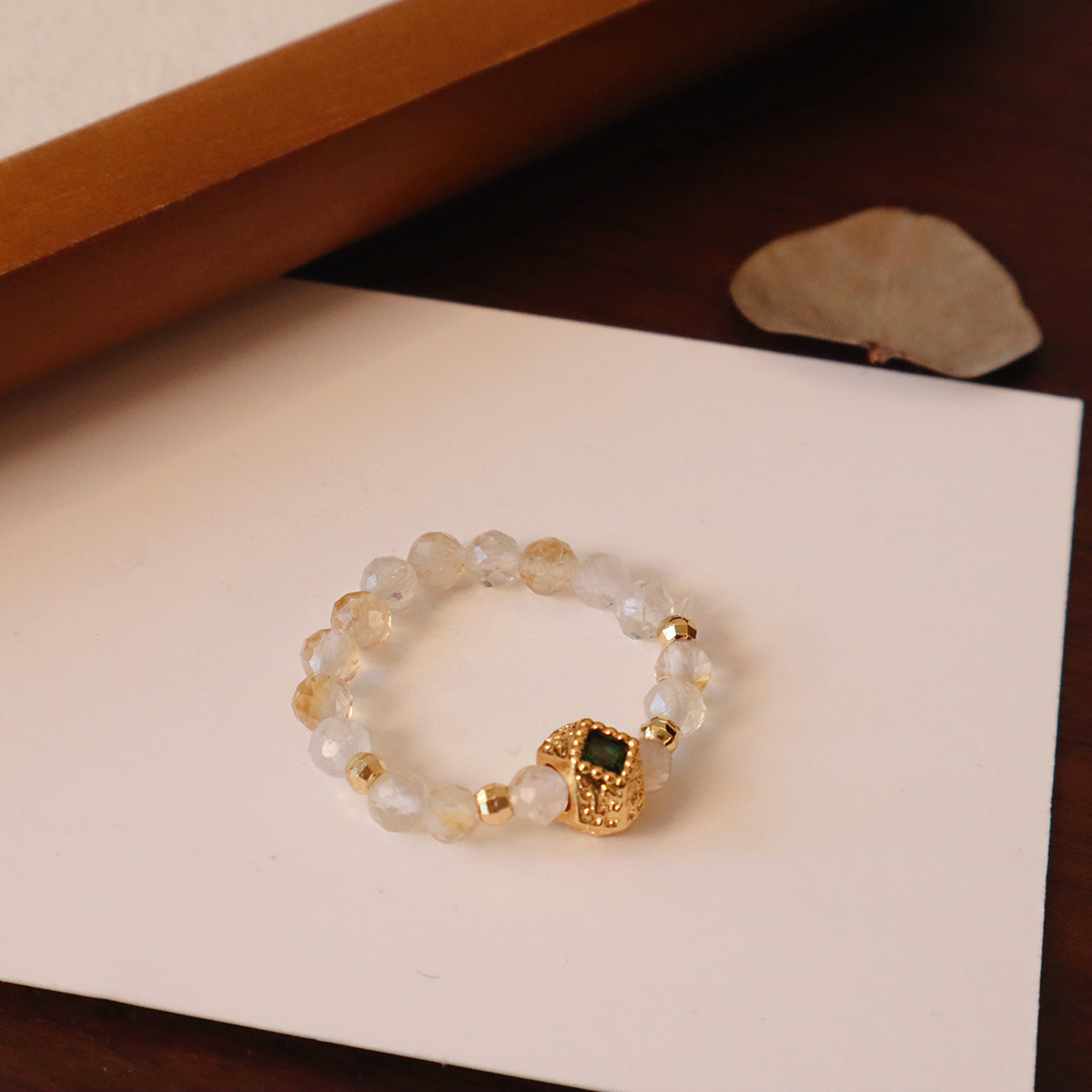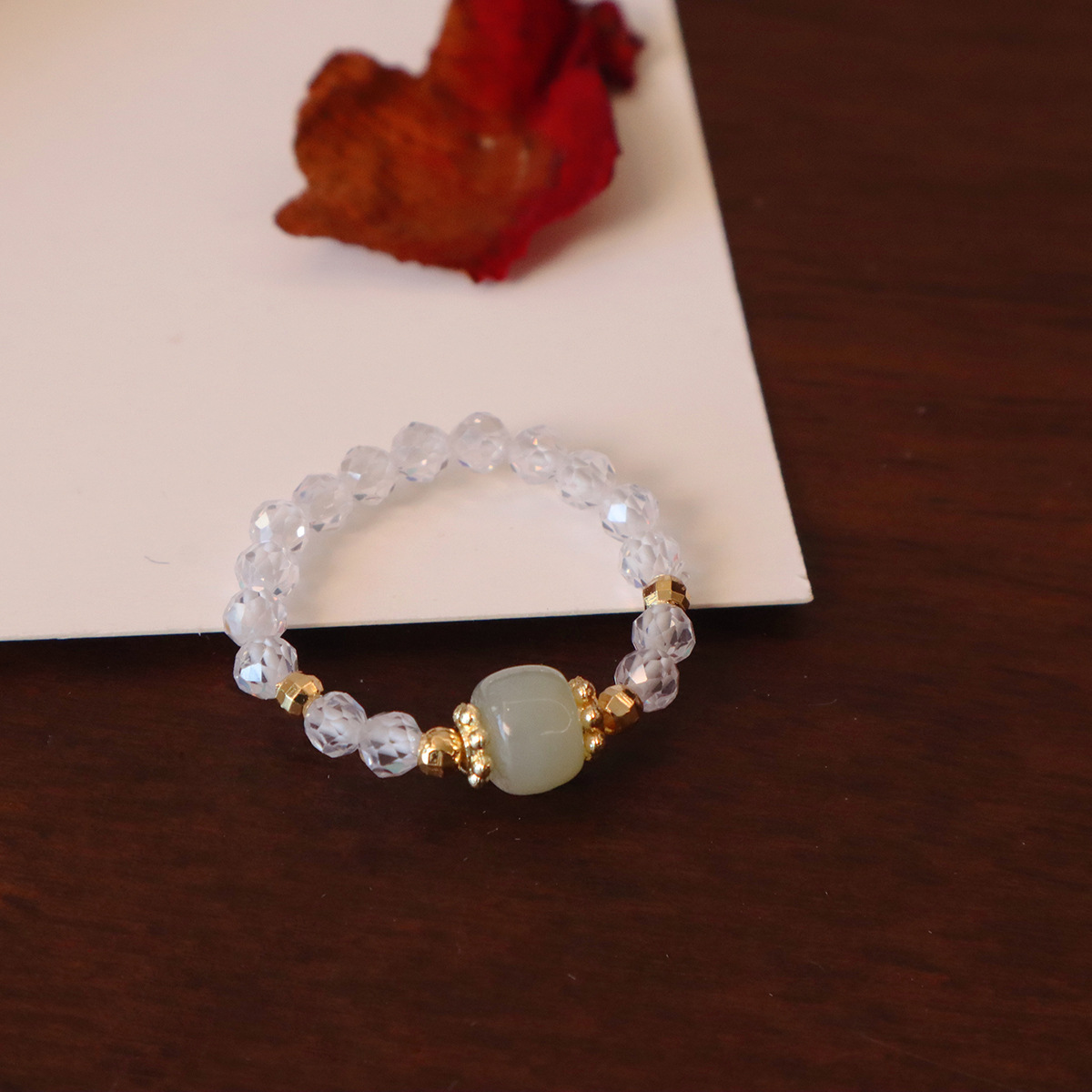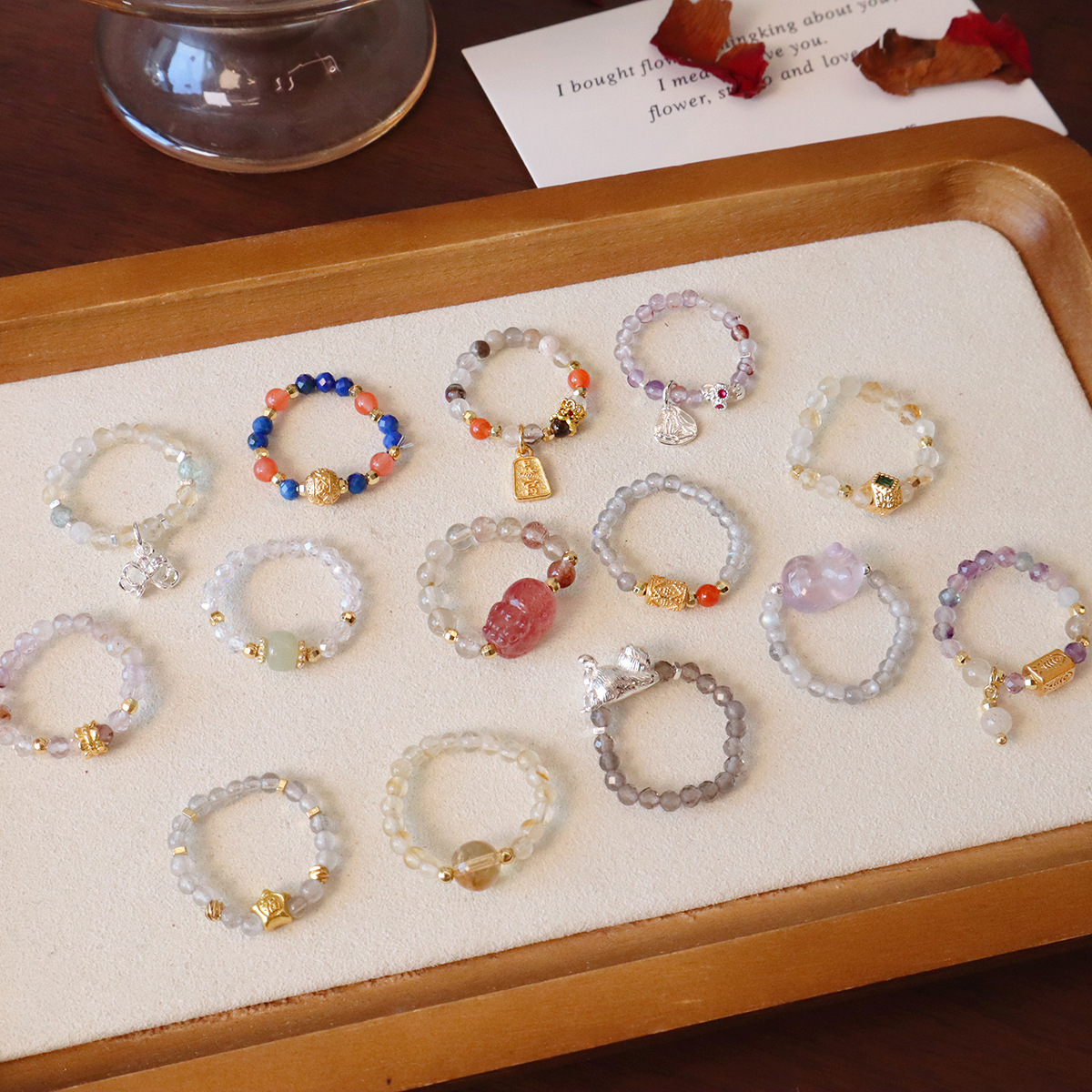 Natural Crystal Ring Stretch National Fashion New Chinese Design Beaded Elastic Rope Crystal Ring Temperament Ring Wholesale