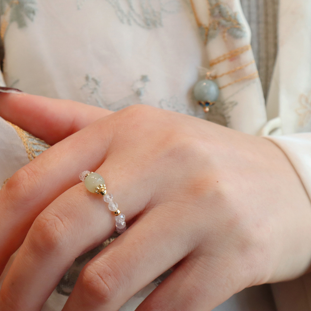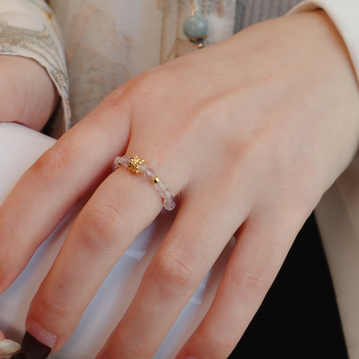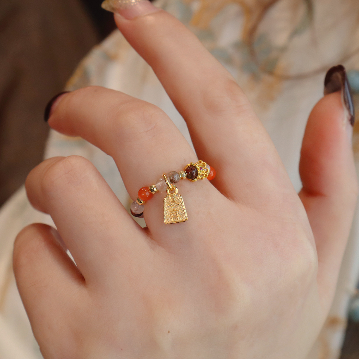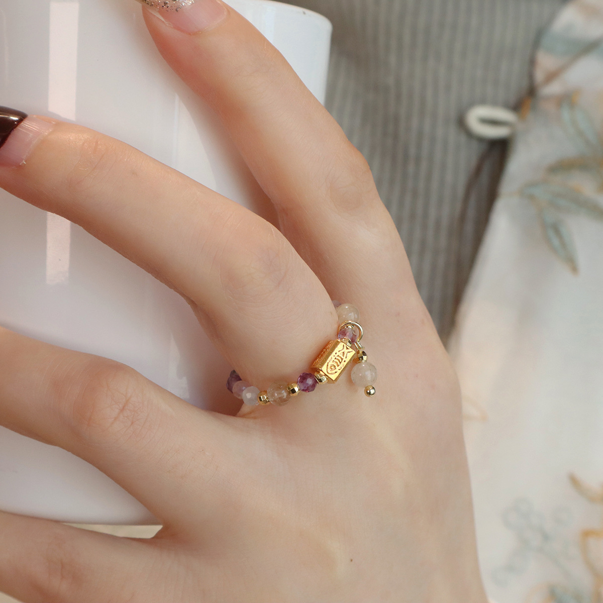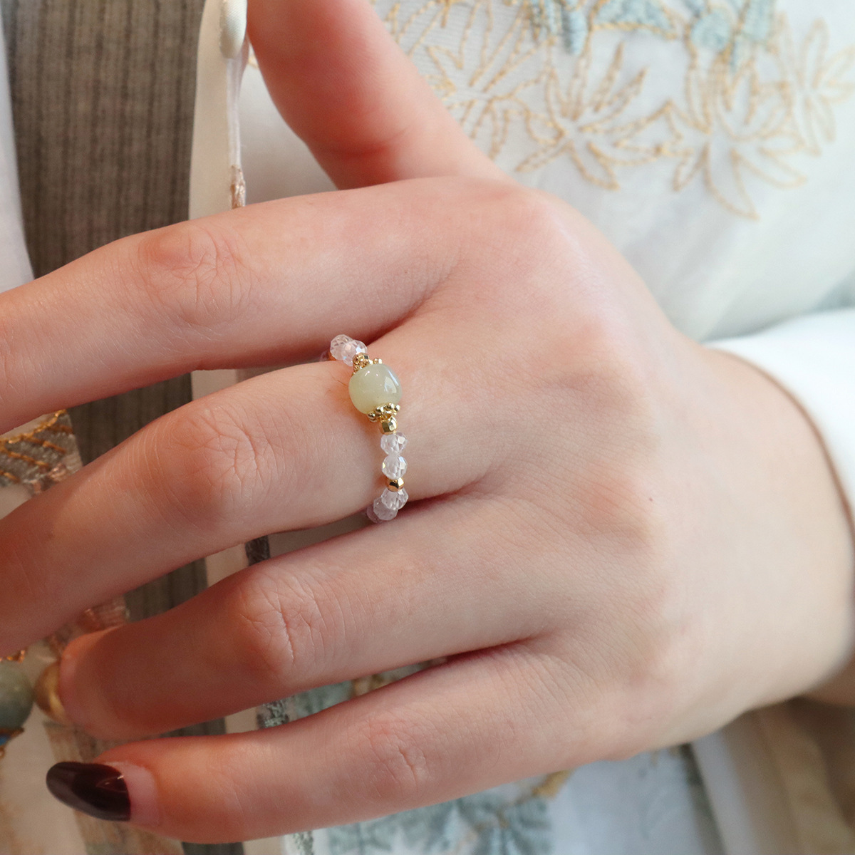 Natural Crystal Ring Stretch National Fashion New Chinese Design Beaded Elastic Rope Crystal Ring Temperament Ring Wholesale