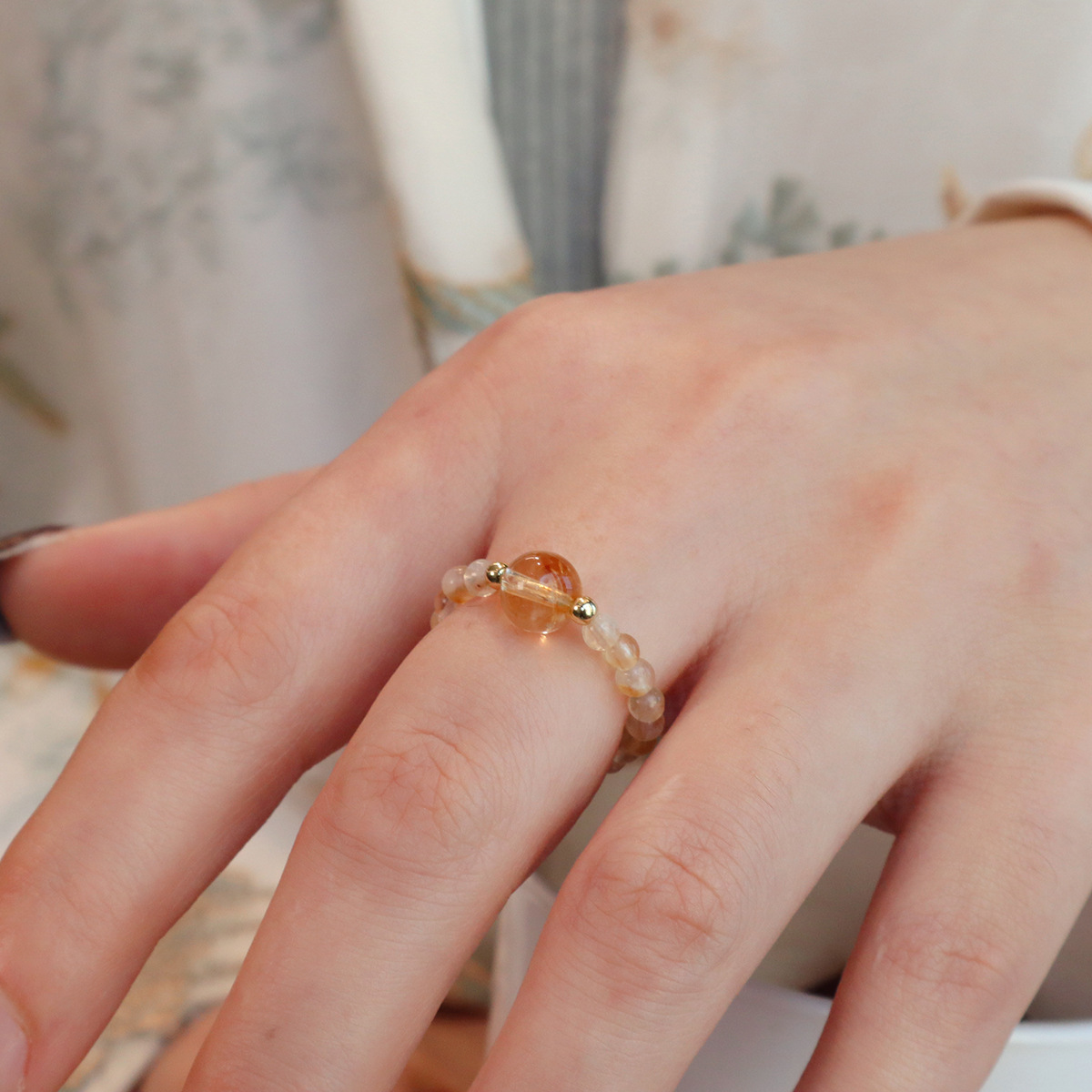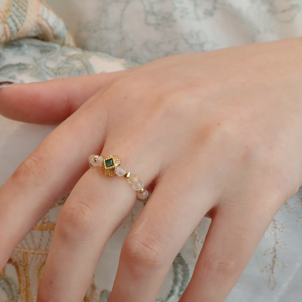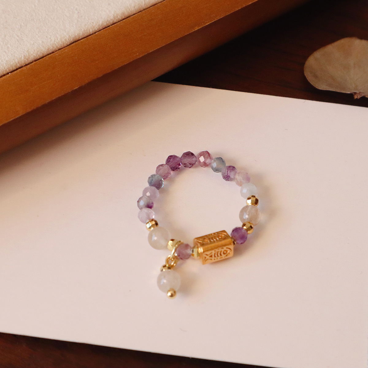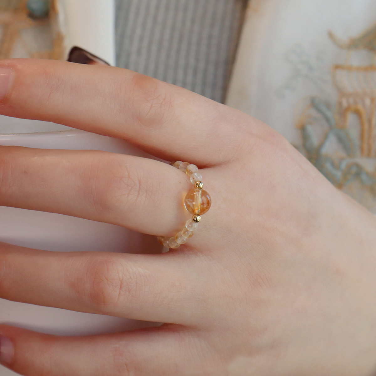 Natural Crystal Ring Stretch National Fashion New Chinese Design Beaded Elastic Rope Crystal Ring Temperament Ring Wholesale