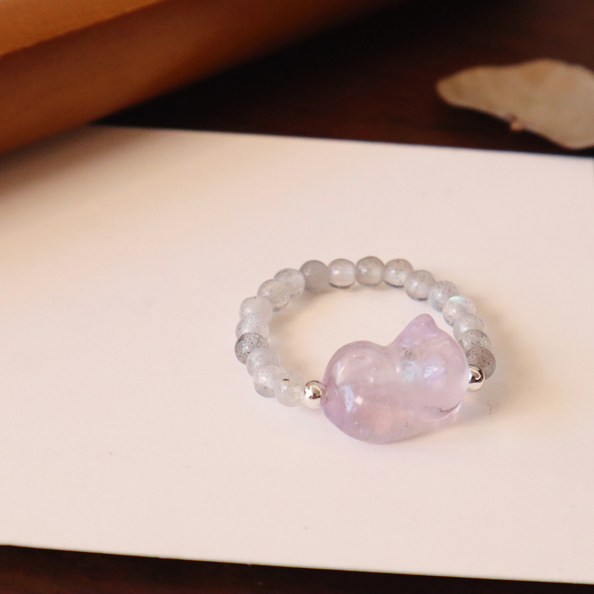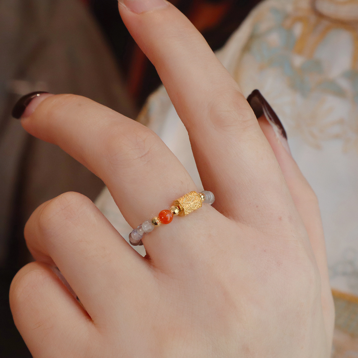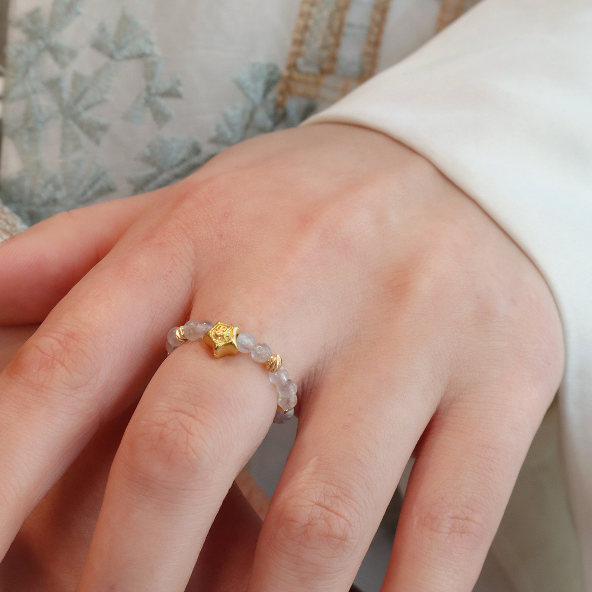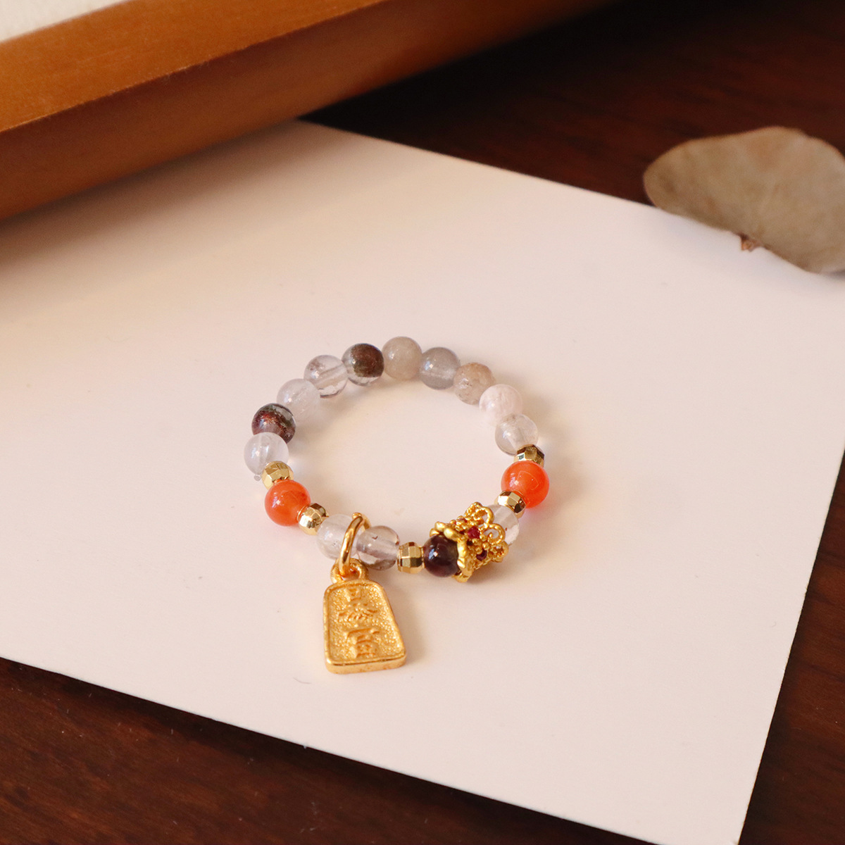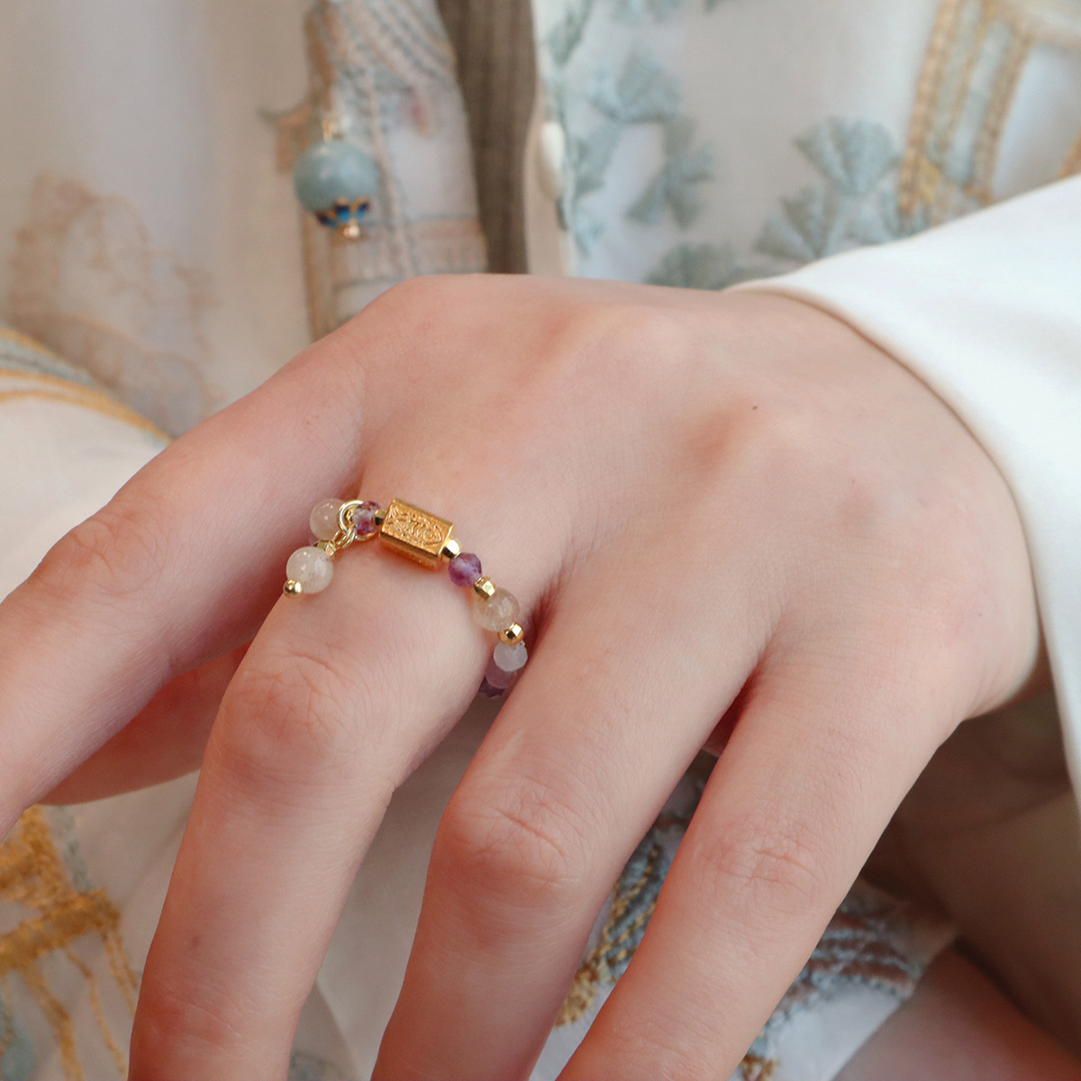 Natural Crystal Ring Stretch National Fashion New Chinese Design Beaded Elastic Rope Crystal Ring Temperament Ring Wholesale