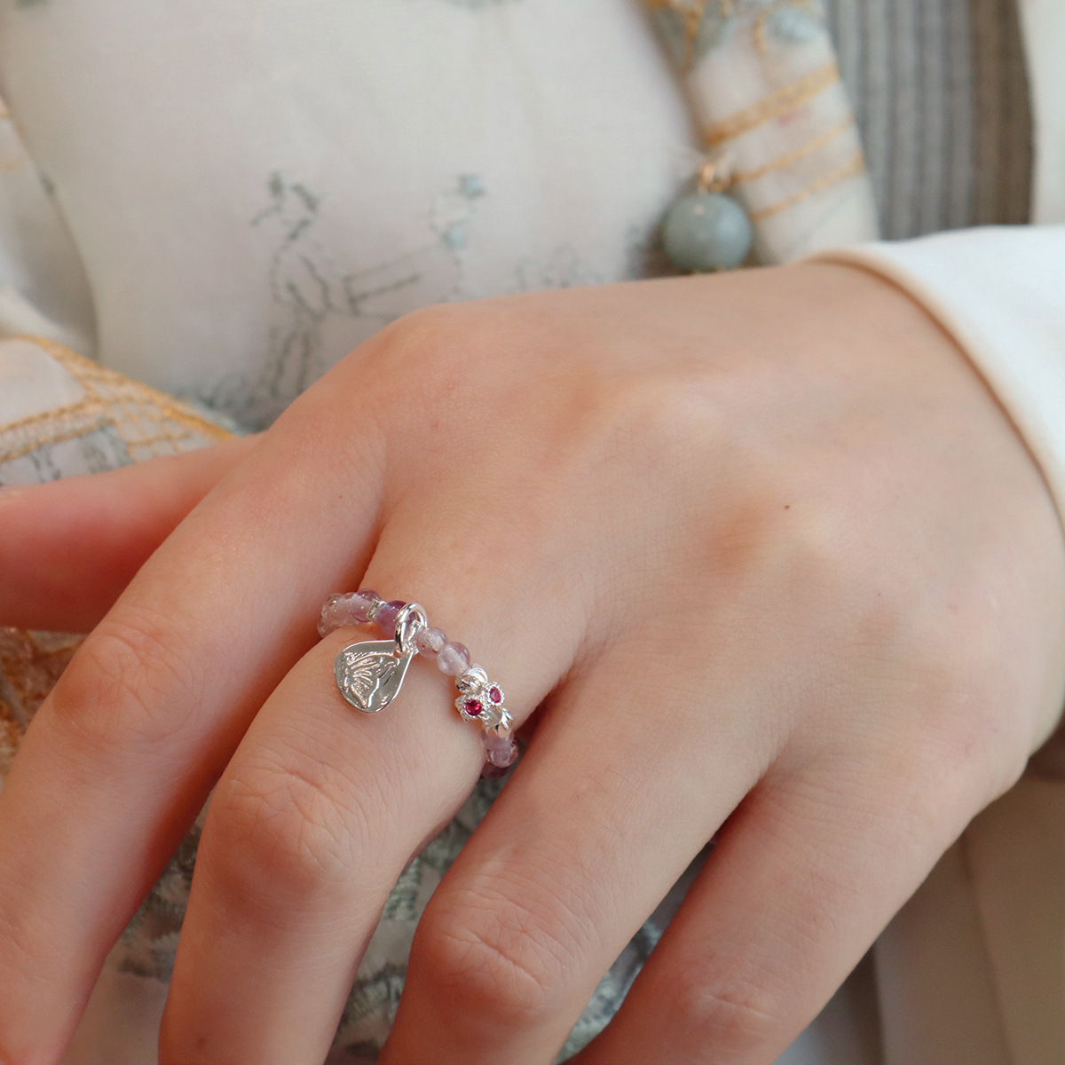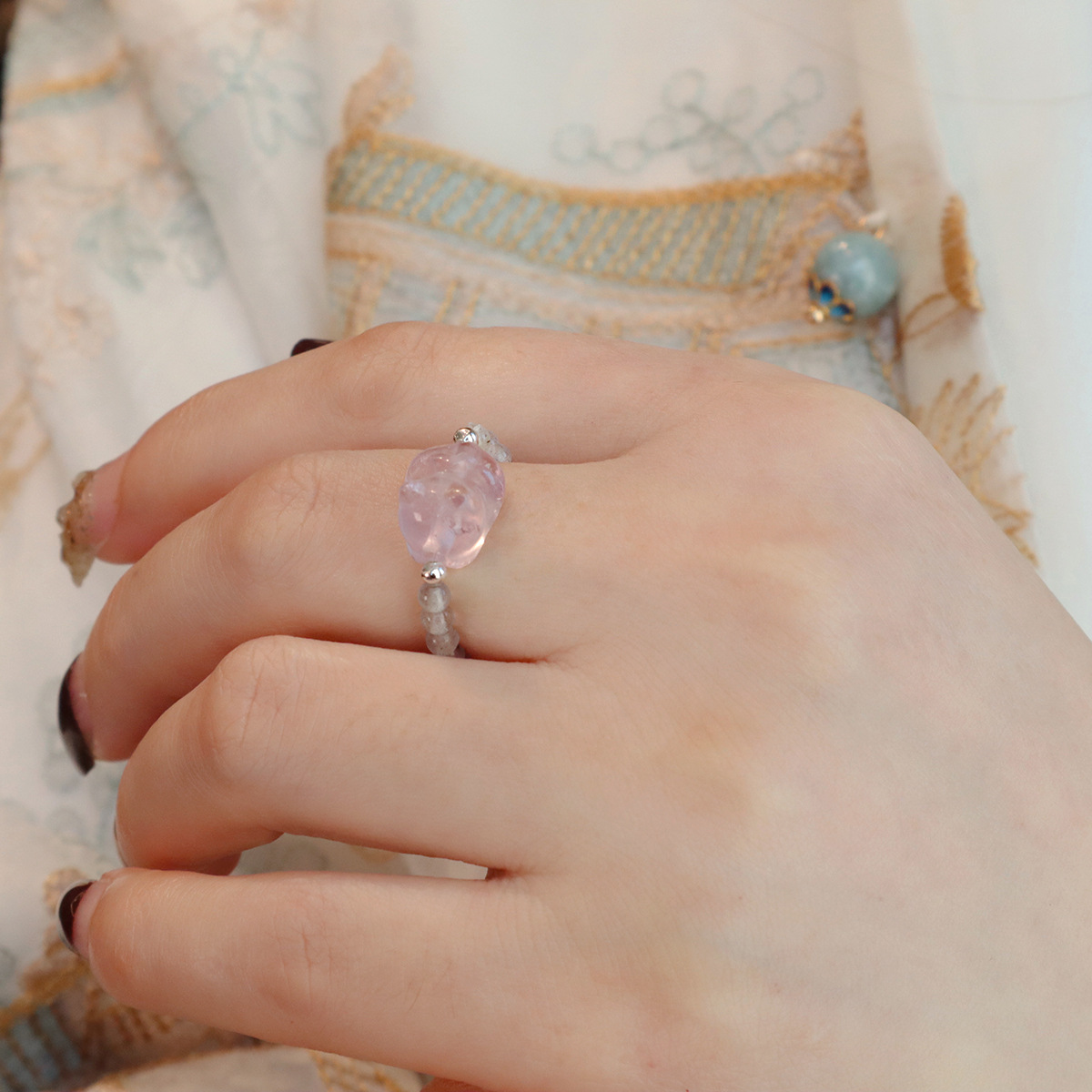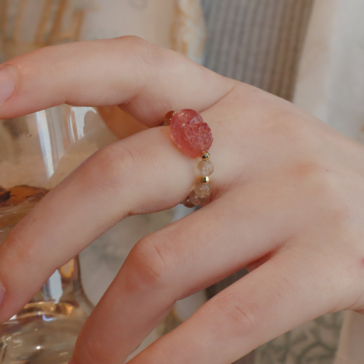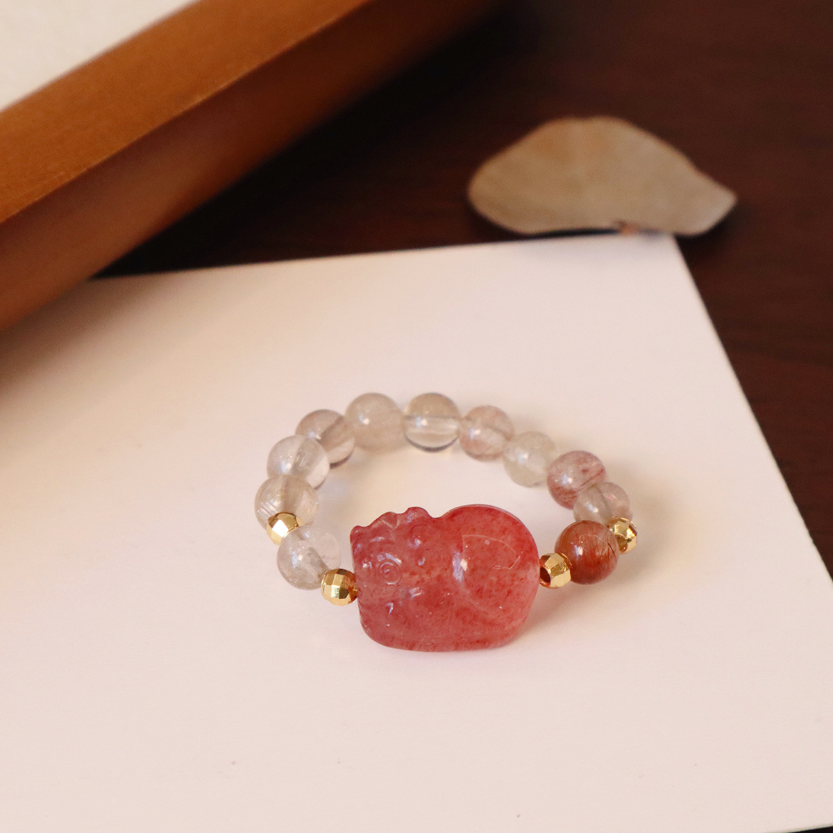 Color: Natural hair crystal strawberry crystal pixiu ring