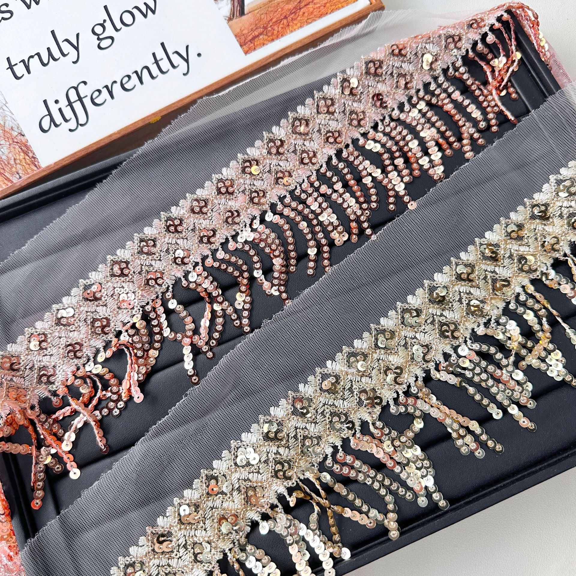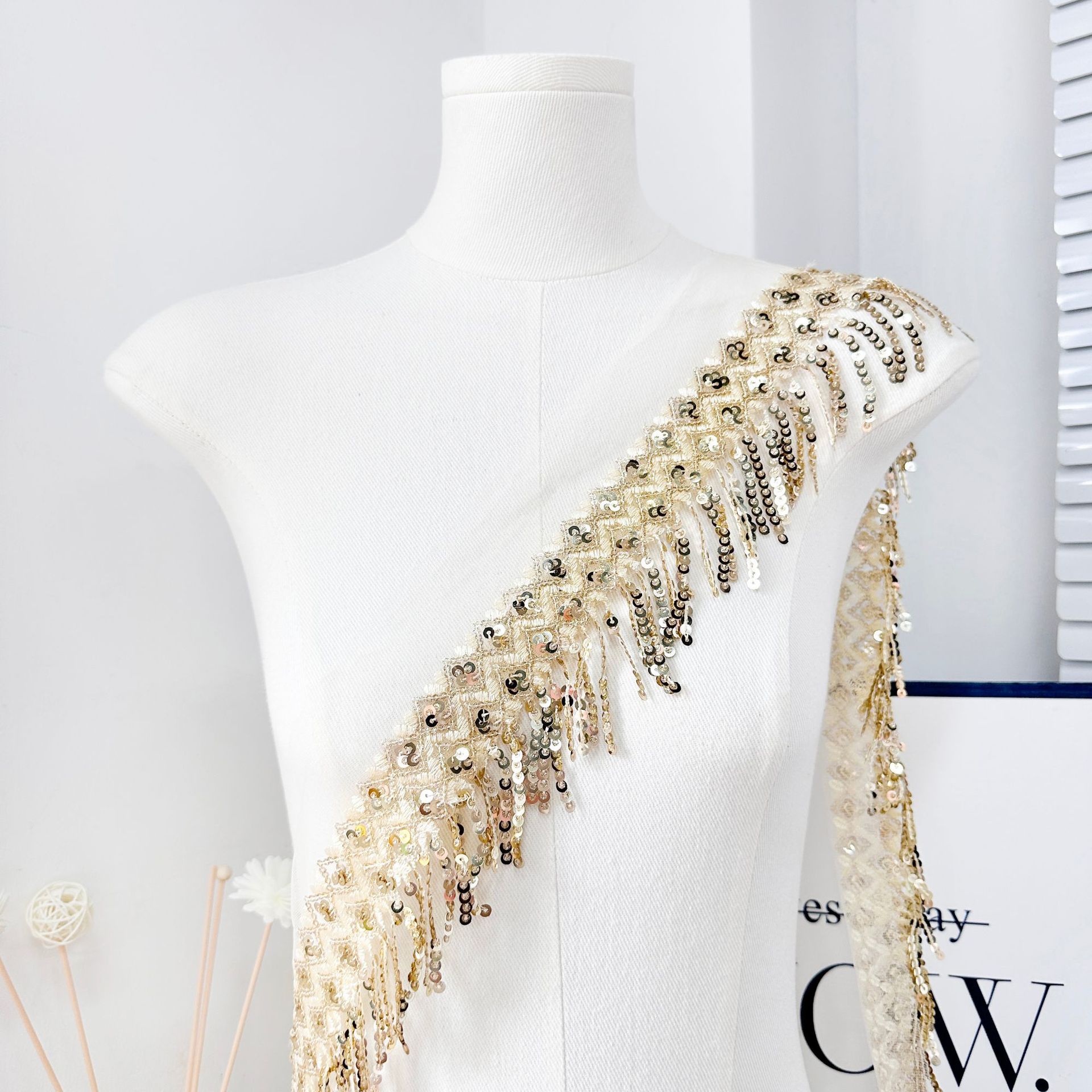 Sequined Water-Soluble Beads Computer Embroider Tassel Lace Rose Gold Barcode Skirt Hem Cuffs Clothing Accessories