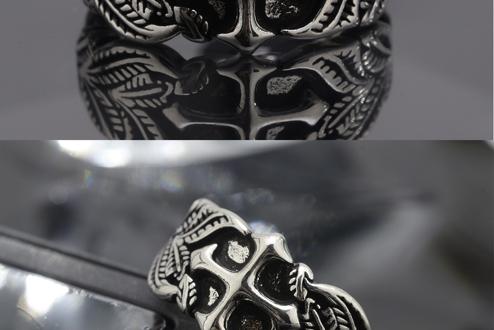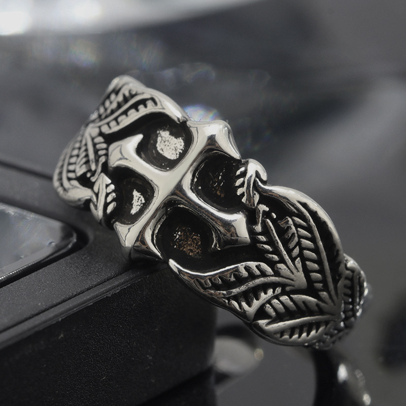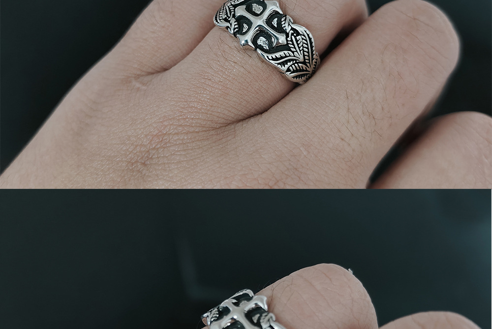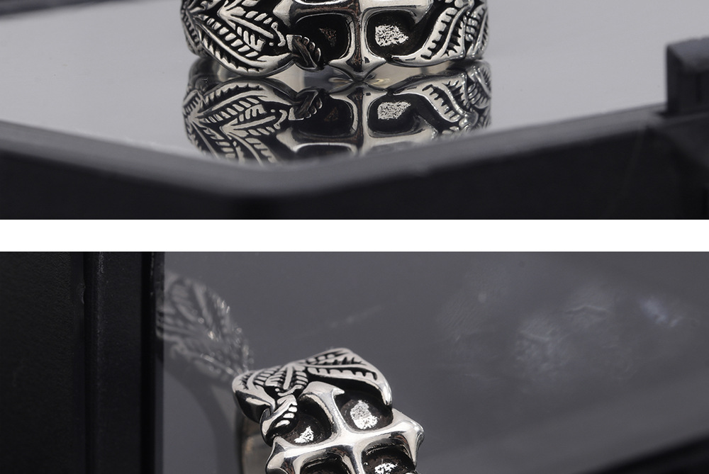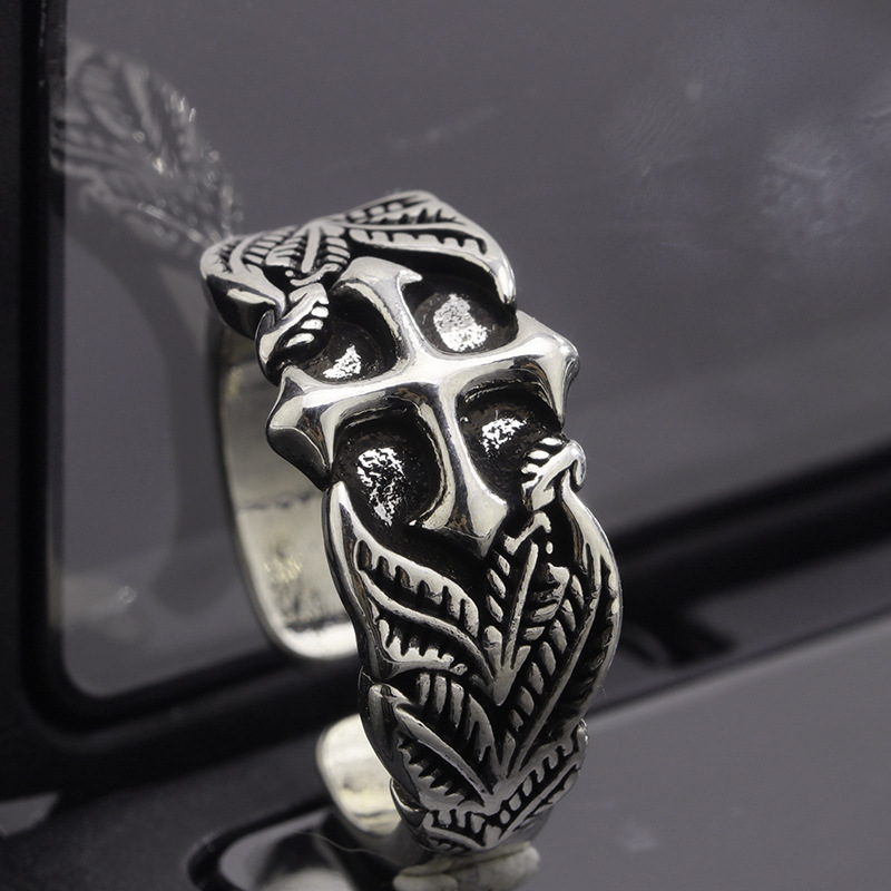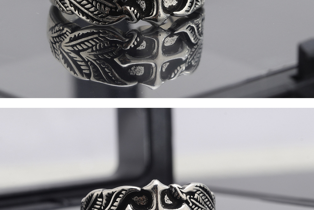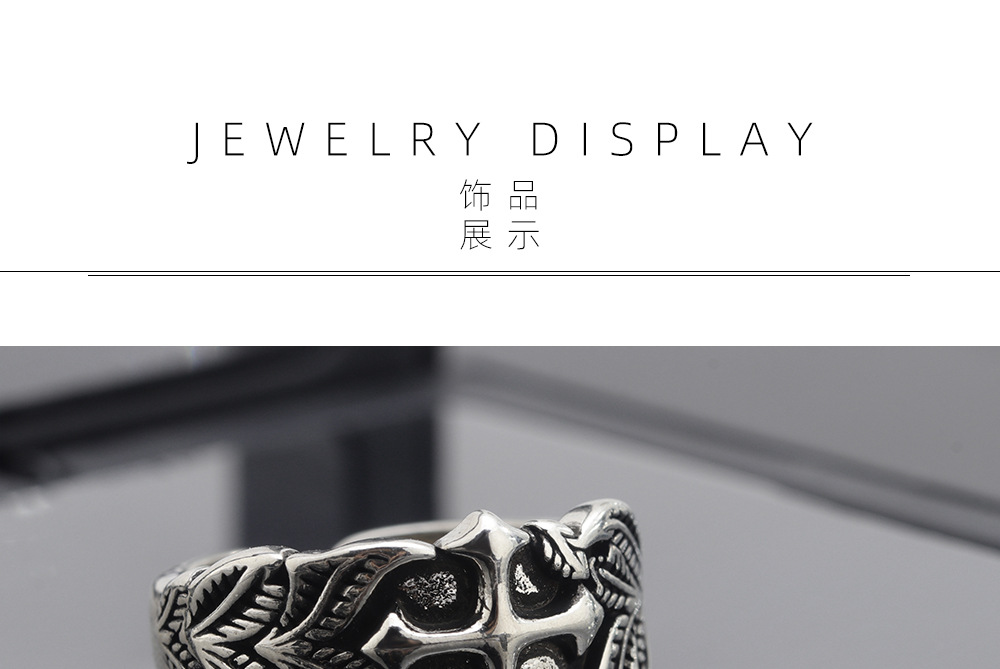 Vintage Cross Ring Men's Trendy Personalized Hip-Hop Style Leaf Texture Finger Ring Advanced Sense Imitation Thai Silver Open Ring