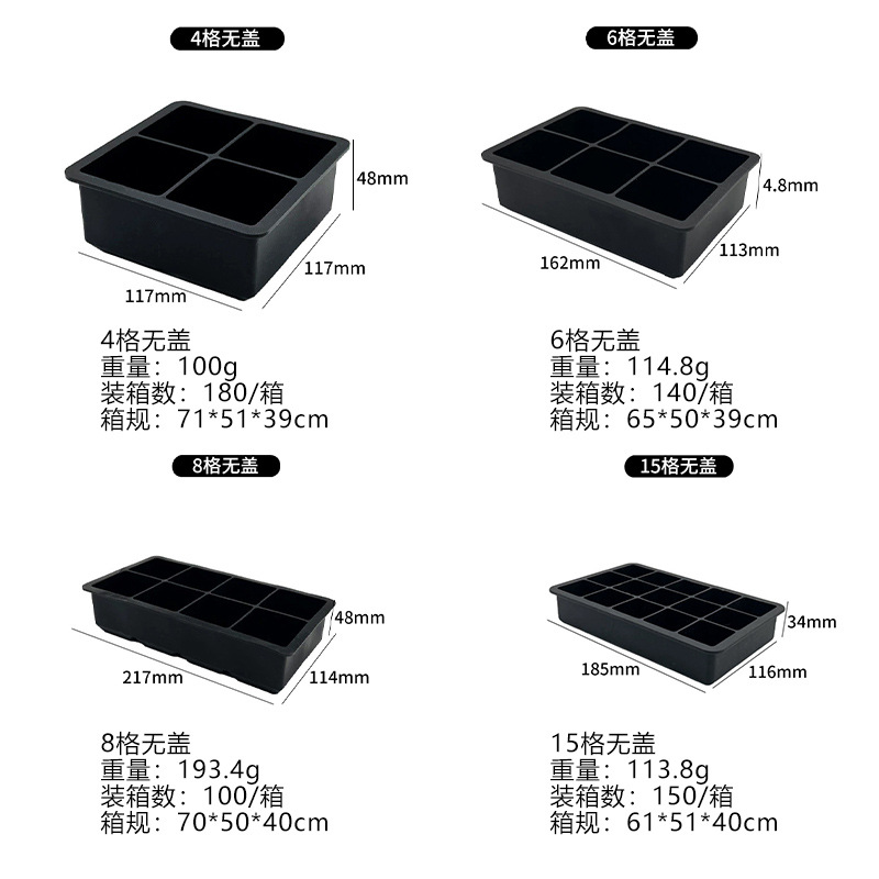 4格11.7*11.7*4.8cm,6格16.2*11.3*4.8cm