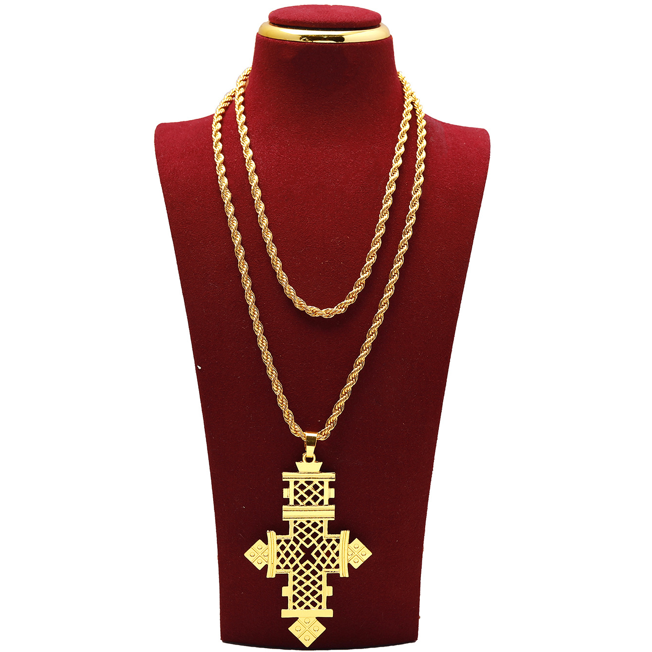 Cross Border Middle East Plated 24K Gold Red Diamond Inlaid Cross Necklace Pendant suit Dubai Bride Wedding Jewelry