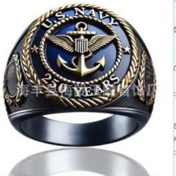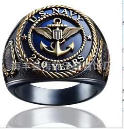 Amazon Cross-border Hot Selling Men's Ring European and American Retro Cool Trendy Eagle Badge Ring
