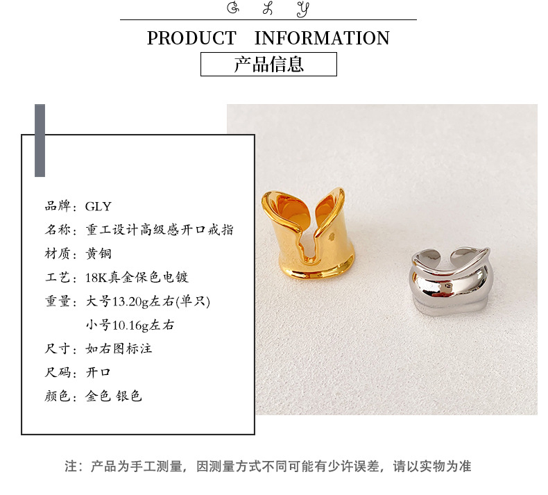 T new heavy industry designer irregular wide opening ring fashion luxury high-end atmosphere ring