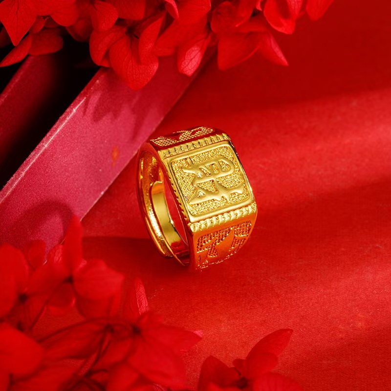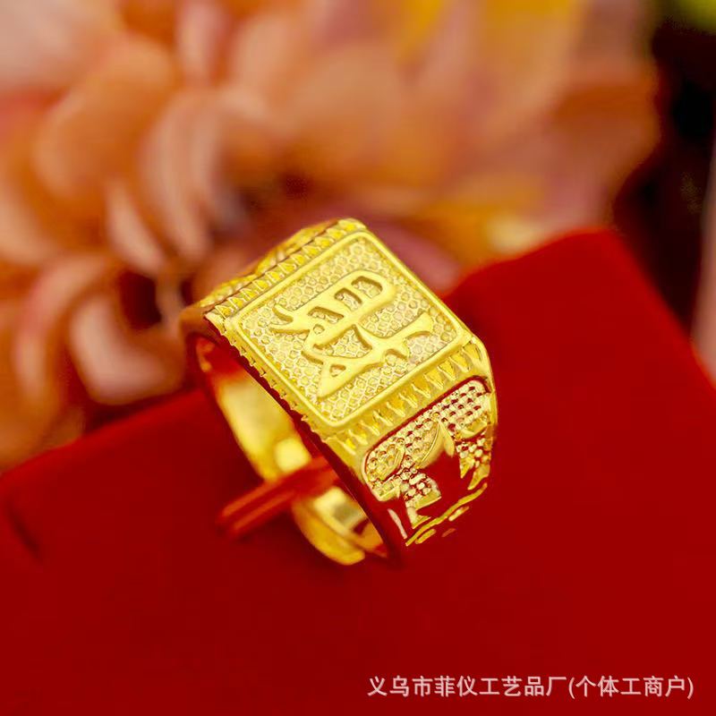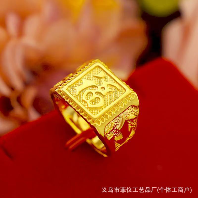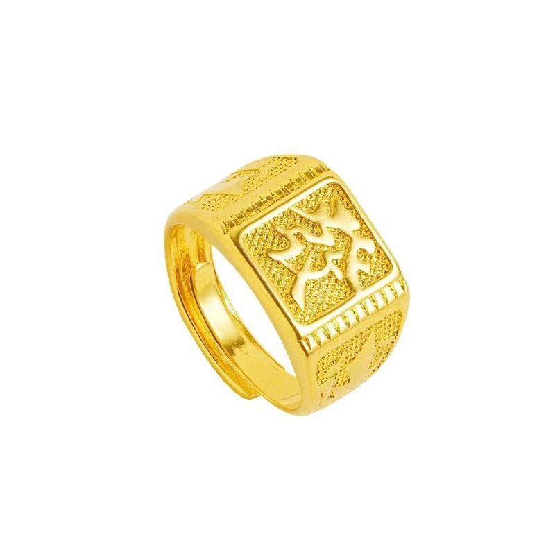 genuine goods Vietnam Sha Jin Men's Ring 24 Gold Store Aggressive Opening Fu Fa Long Word Ring Gold Color Boss Ring
