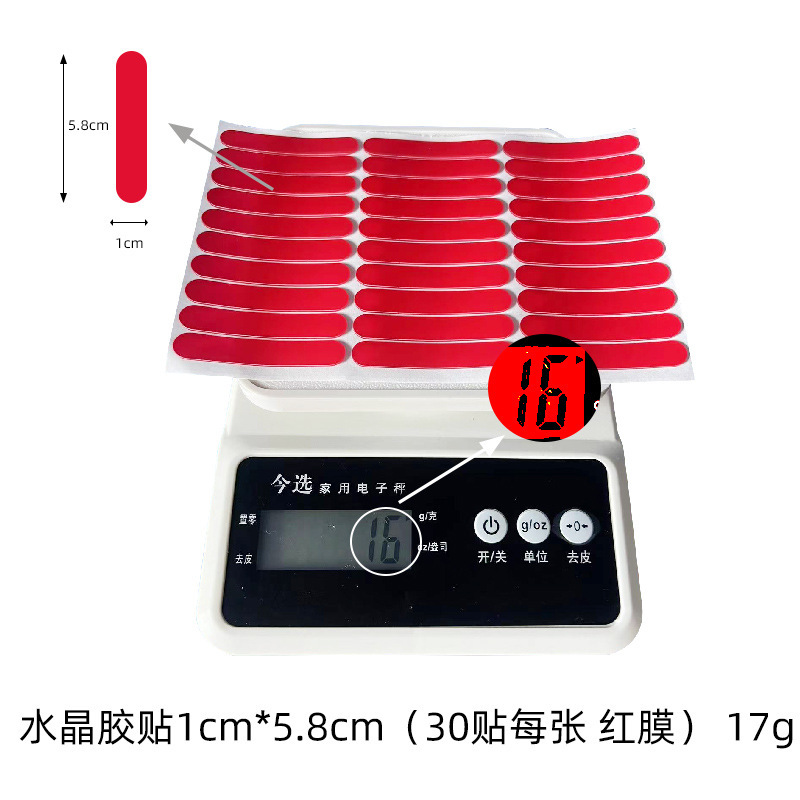 Specifications and models: Red film; crystal adhesive tape 10mm*58mm 30 pieces/sheet