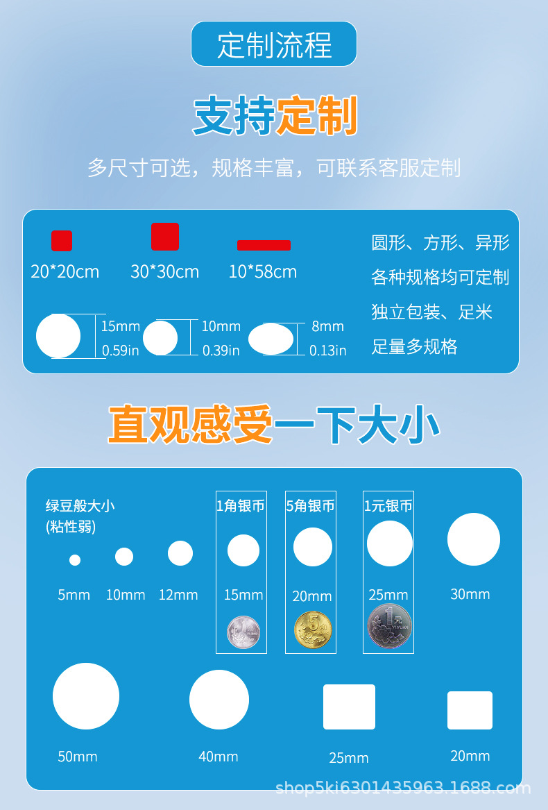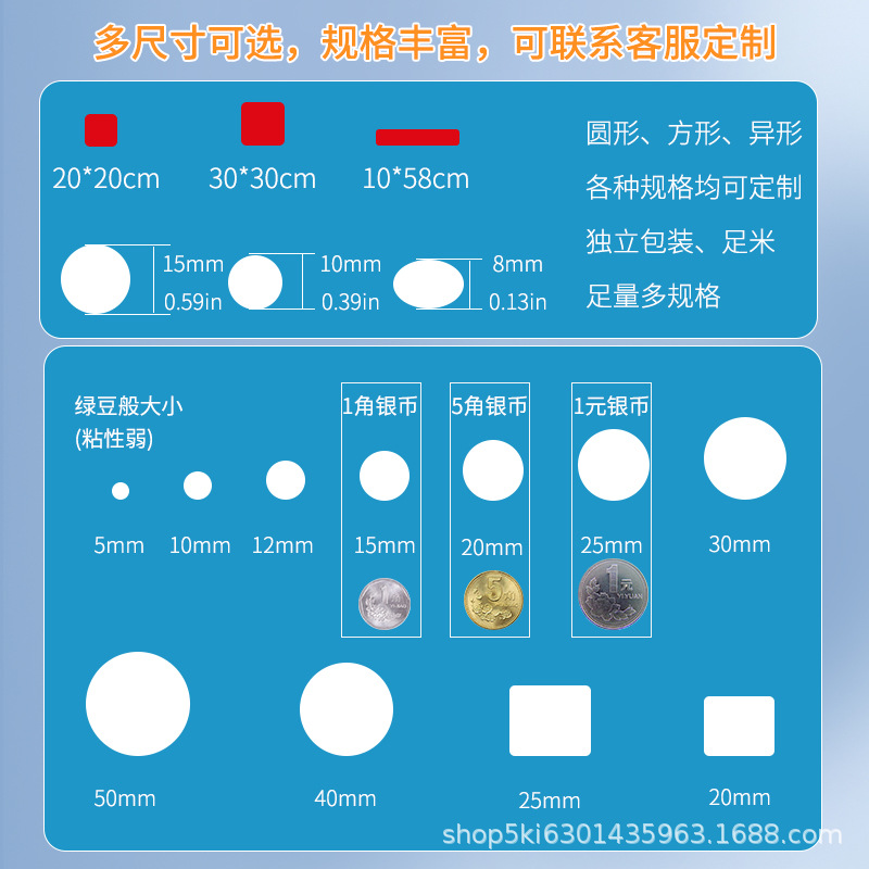 Specifications and models: White film; round 15mm, thickness 0.8mm, 30 pieces/sheet