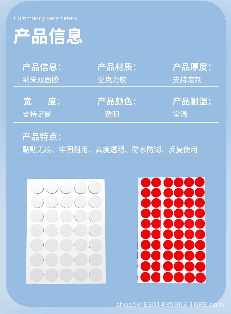 Specifications and models: White film; round 10mm, thickness 1.0mm, 100 pieces/sheet