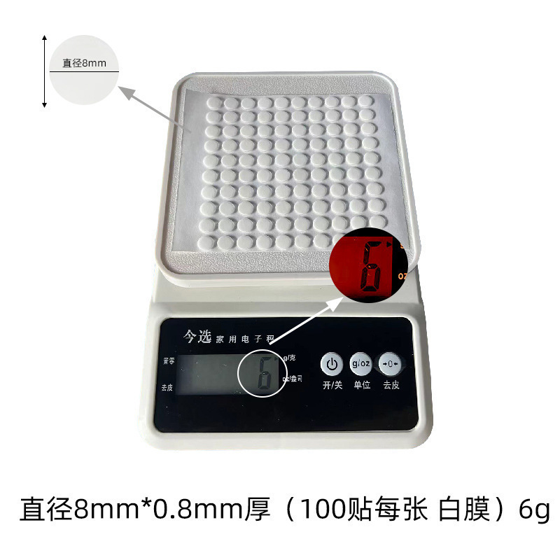 Specifications and models: White film; round 8mm, thickness 0.8mm, 100 pieces/sheet