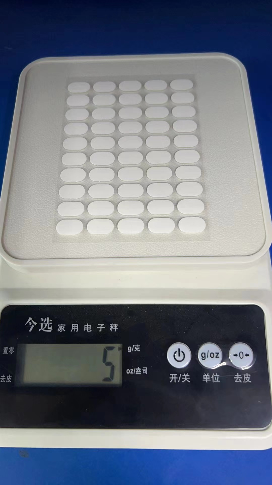 Specifications and models: White film; round 10mm, thickness 0.8mm, 50 tablets/sheet