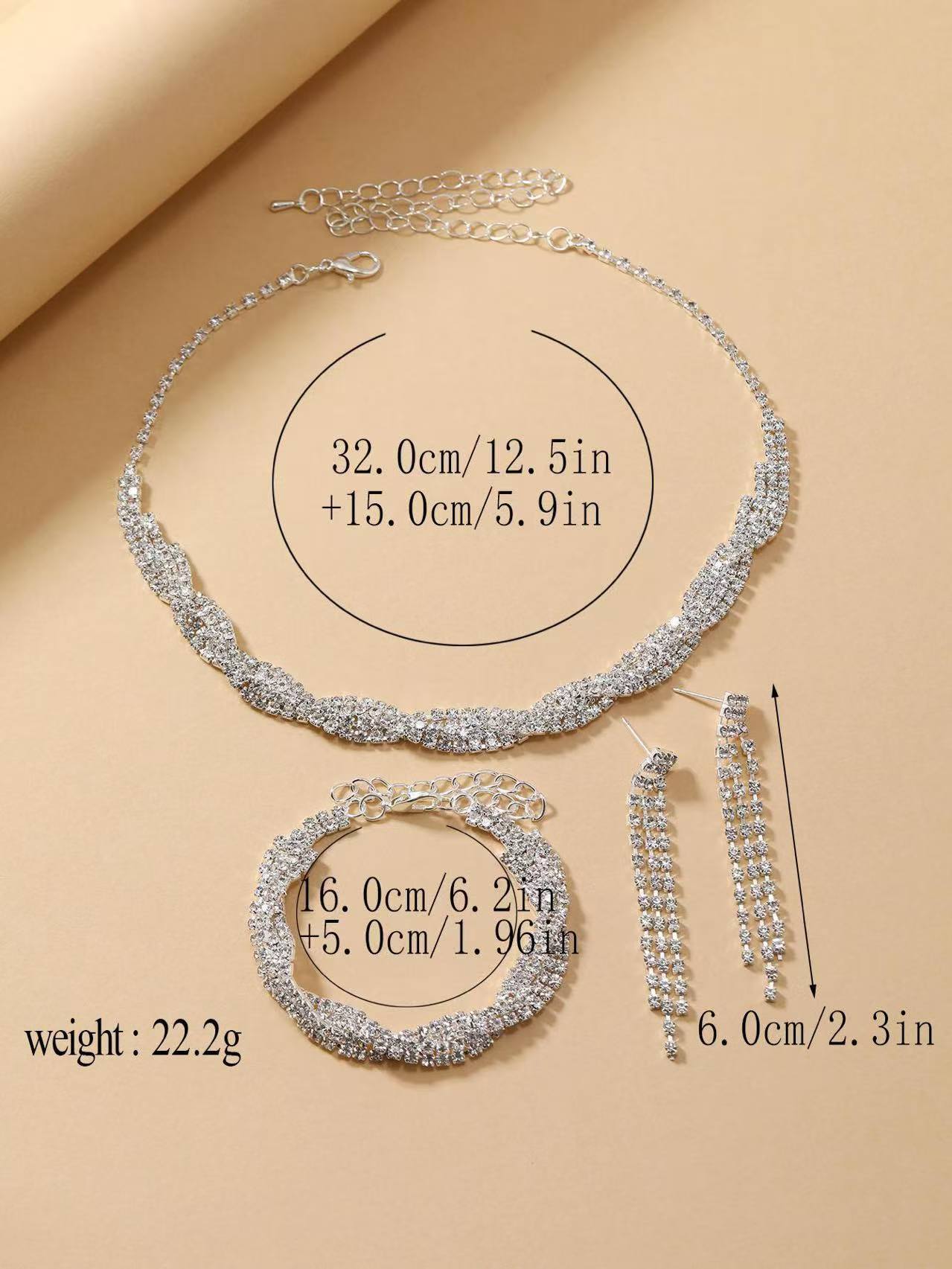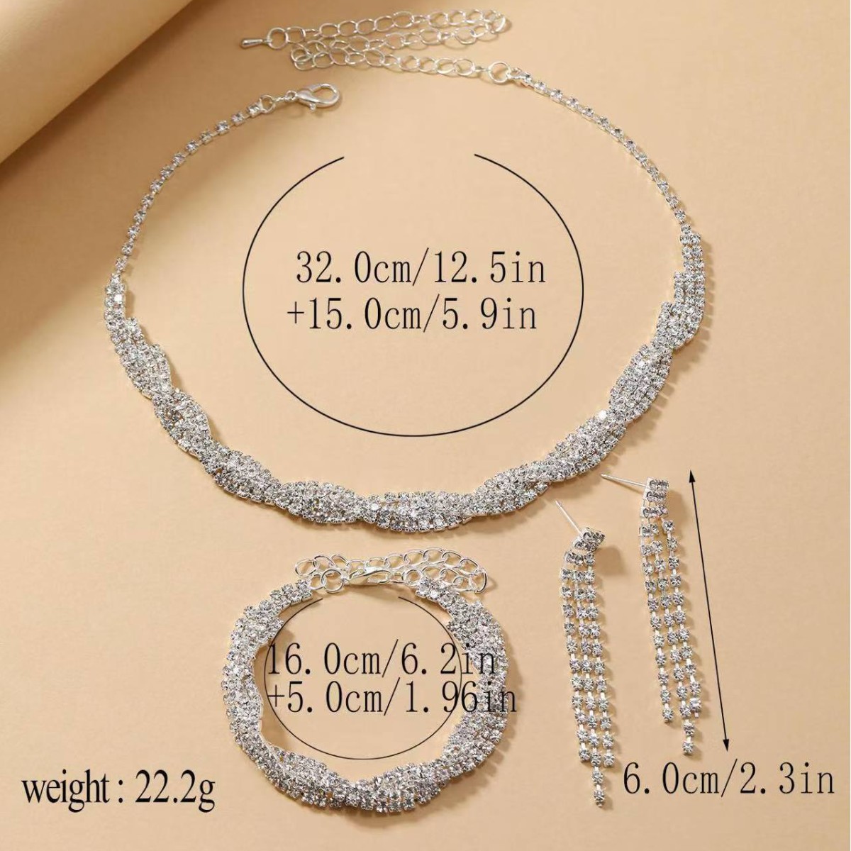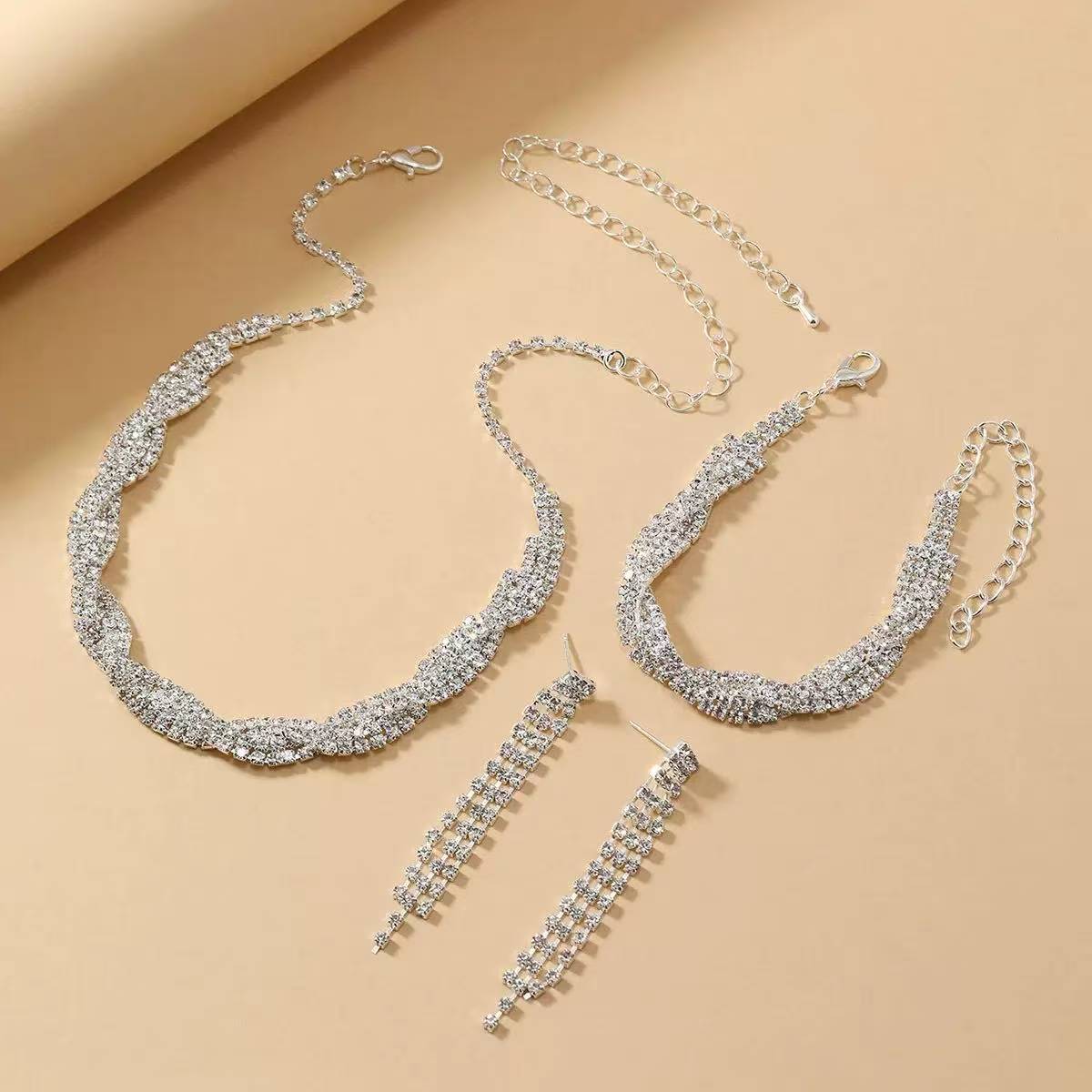 Wedding Party Jewelry Three-piece Set Women's Decorative Fashion Claw Chain Brilliant Diamond Banquet Bracelet Necklace Earrings