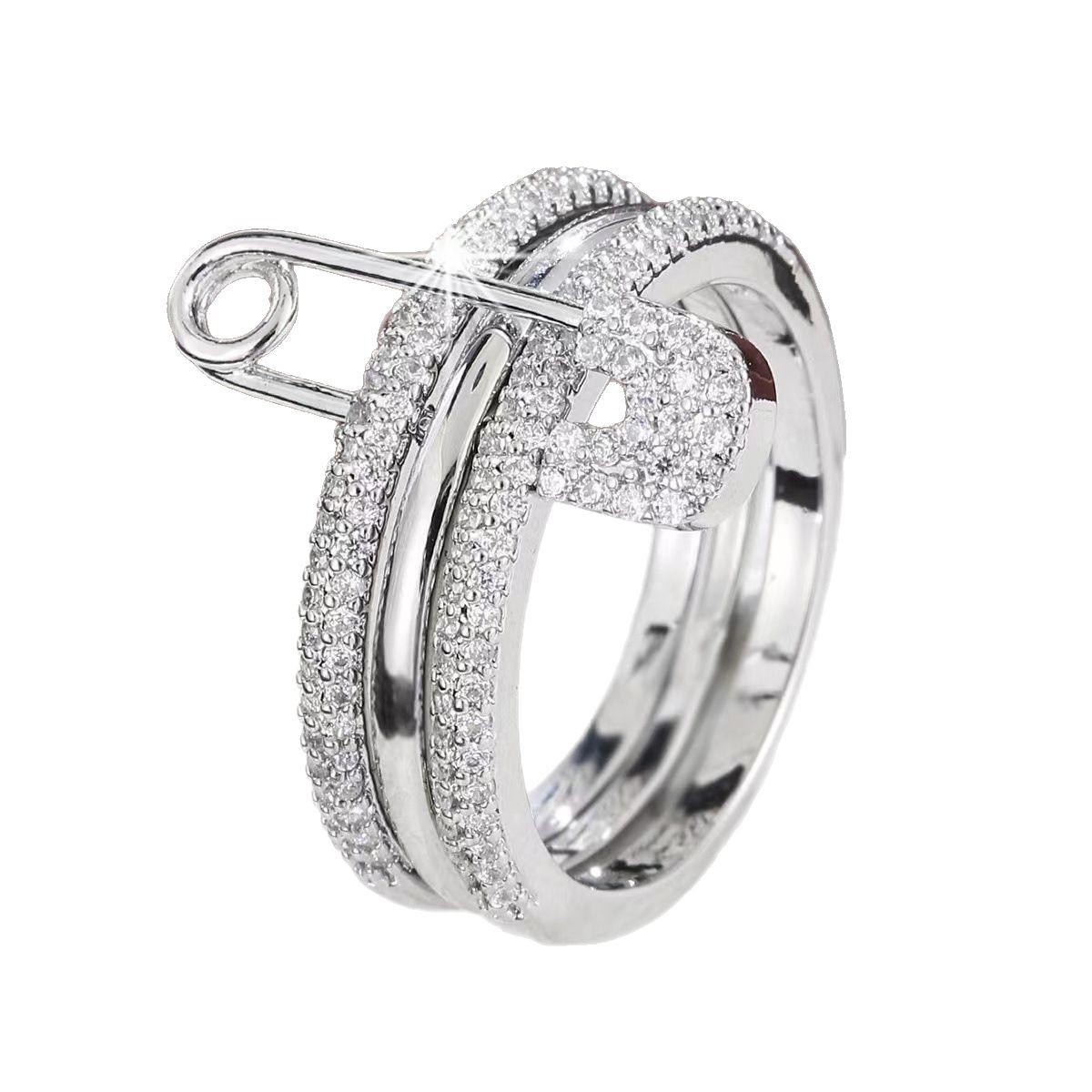 Fashion three-color ring detachable ring women's personality micro-inlaid zircon pin ring cross-border hot-selling