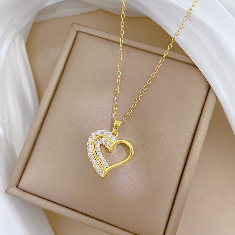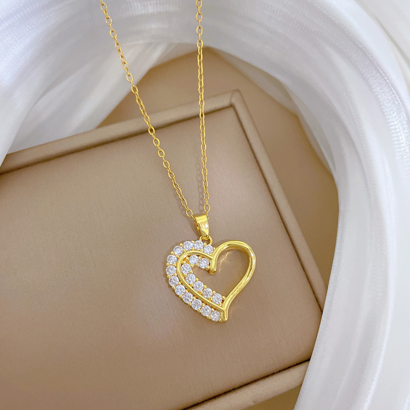 [Titanium Steel] Full Diamond Love Double Layer Fashion Light Luxury Temperament Gorgeous Full Diamond Necklace Women's Easiest for Match Clavicle Chain Titanium Steel