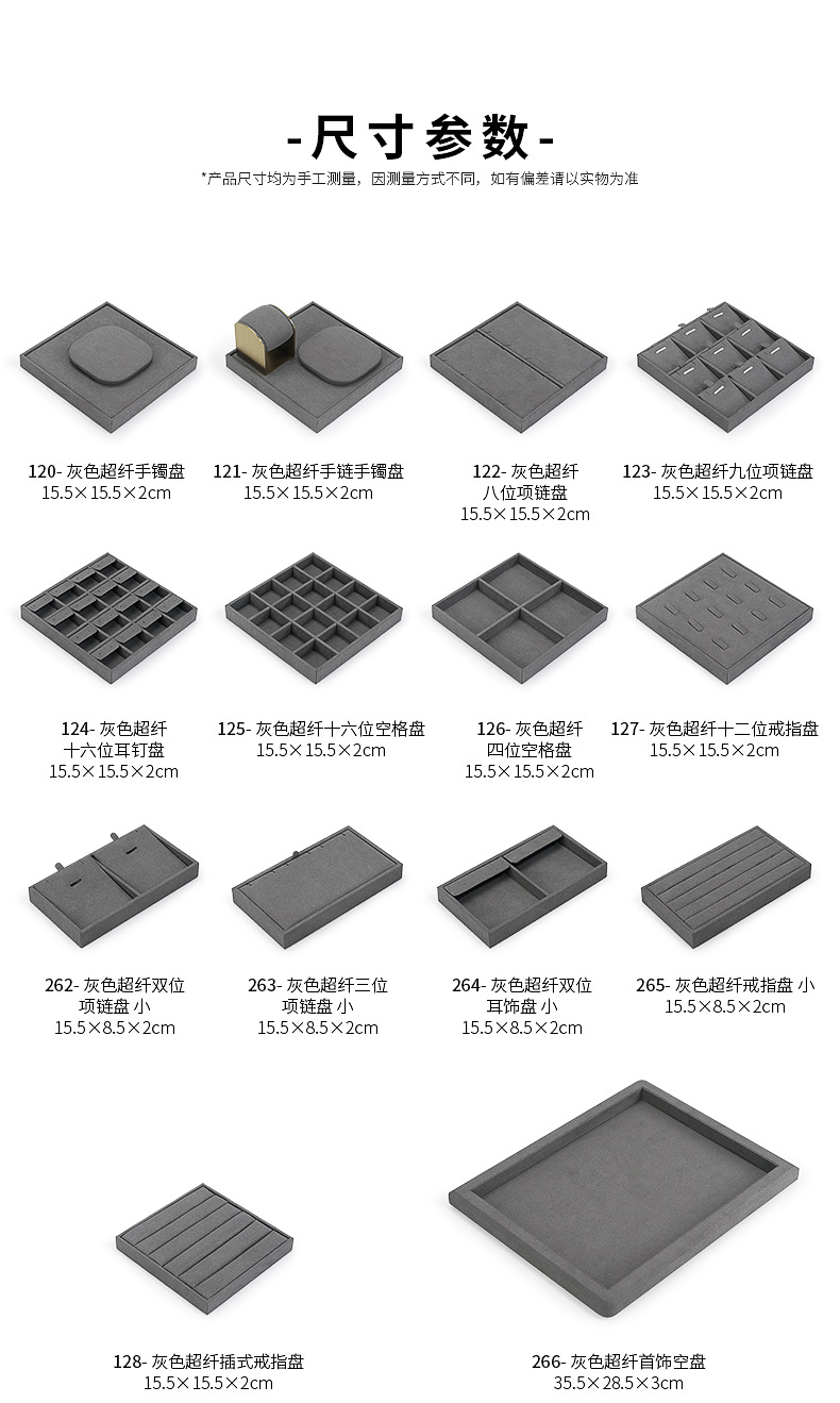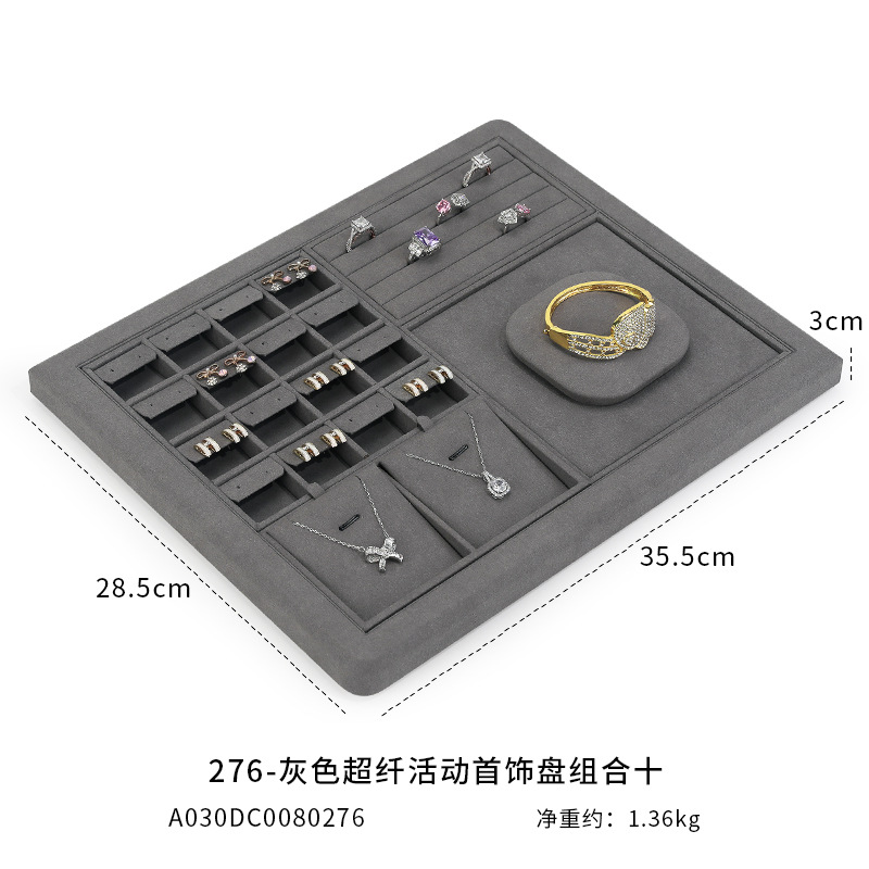 Color: 276-gray microfiber movable jewelry tray set of ten 35.5×28.5×3cm