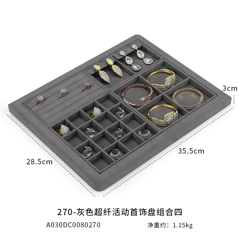 Color: 270-gray microfiber movable jewelry tray set of four 35.5×28.5×3cm