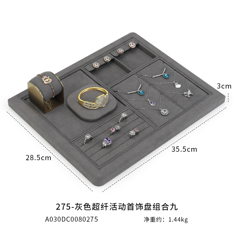 Color: 274-gray microfiber movable jewelry tray set of eight 35.5×28.5×3cm