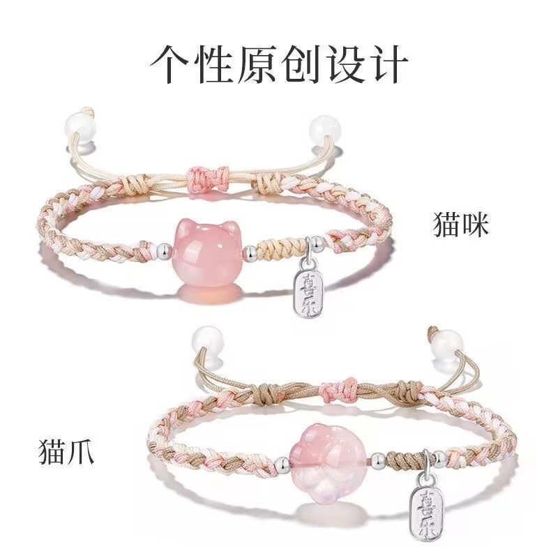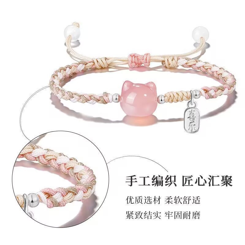 KT Cat Ping An Brand Woven All-match Girl's Hand Rope High-value Bracelet for Girlfriend