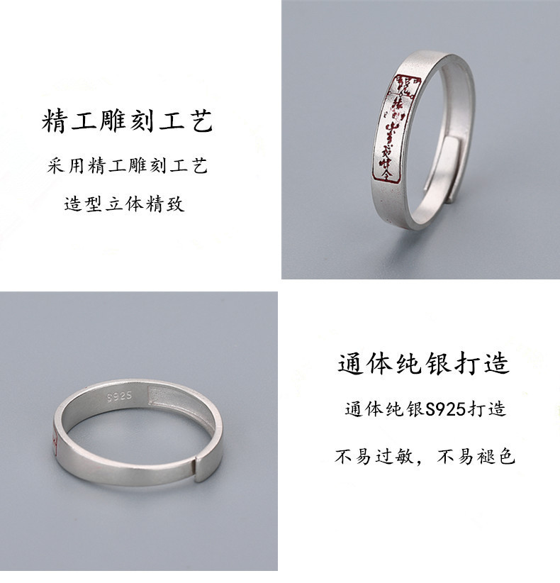 S925 Sterling Silver Peach Blossom Cinnabar Ring for Men and Women Peace Taoist Culture Retro Chinese Style This Year's End Ring Nafu